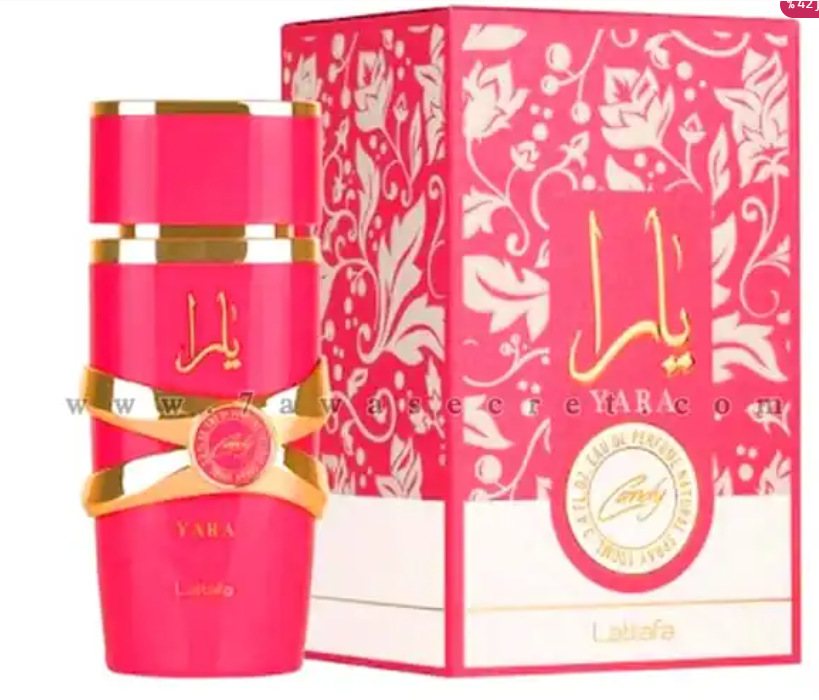 : Yara Candy Lattafa Perfumes عطر زهري – فواكه – جورماند للنساء . هذا عطر جديد Yara Candy صدر عام 2024. إفتتاحية العطر الكشمش الأسود و الماندرين الأحضر; قلب العطر Strawberry Fizz Candy و الغاردينيا; قاعدة العطر تتكون من الفانيليا, العنبر, المسك و خشب الصندل.
