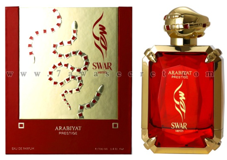 Swar Venin Arabiyat Prestige عطر شرقي – زهري للنساء .صدر عام 2025. Julia Rodriguez قام بتوقيع هذا العطر. إفتتاحية العطر توت العليق, الكشمش الأسود و الكرز; قلب العطر خشب الأرز, الورد و البخور; قاعدة العطر تتكون من الفانيليا, الآمبرغريس و المسك