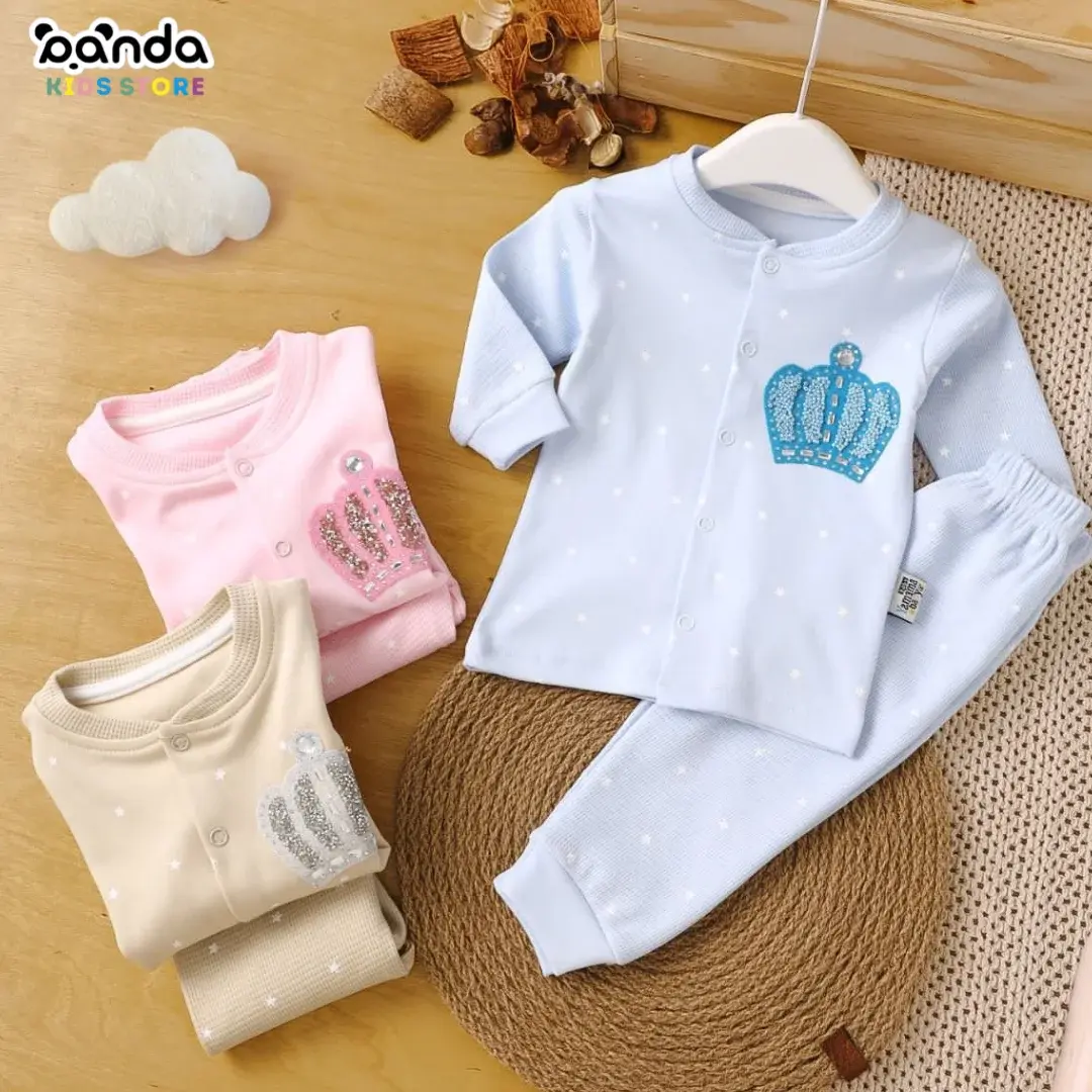 بيجامة بيتي قطن تطريز تاج من شيك بيبي