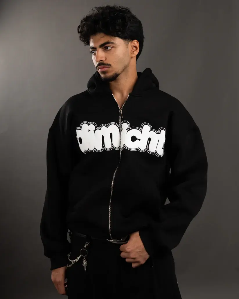 Introduction : The name Dimlicht means "dim light," as it incorporates elements from both German and English, giving it a unique feel. It features a brass zipper, embossed print on the front, and a semi-mixed print on the back.