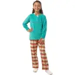 Let your little girl stay warm and stylish this winter with the Zecotex Winter Collection Girls Pajamas Set. This 2-piece set features a soft plush velvet blouse with a V-neck basin design, front embroidery, and button closure—perfect for cozy nights at home. Paired with wool checkered trousers and an elastic waistband, it combines comfort with cute seasonal charm. Made of 100% premium cotton, the fabric is gentle on skin, breathable, and ideal for girls aged 6–10. A perfect gift for the cold season that blends warmth, comfort, and elegance.