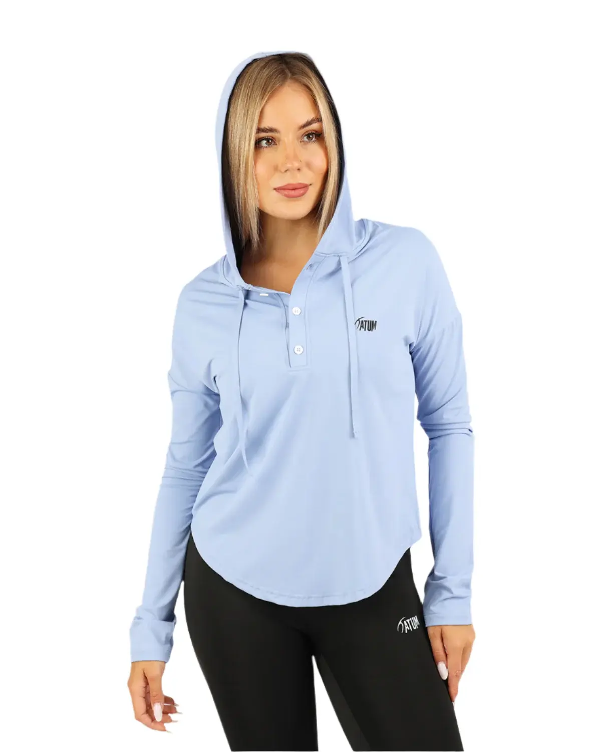 "Add a touch of sophistication to your wardrobe with our blue Breeze Long Sleeve Women's Hoodie-Tee. This versatile top is both stylish and comfortable, perfect for everyday wear."
