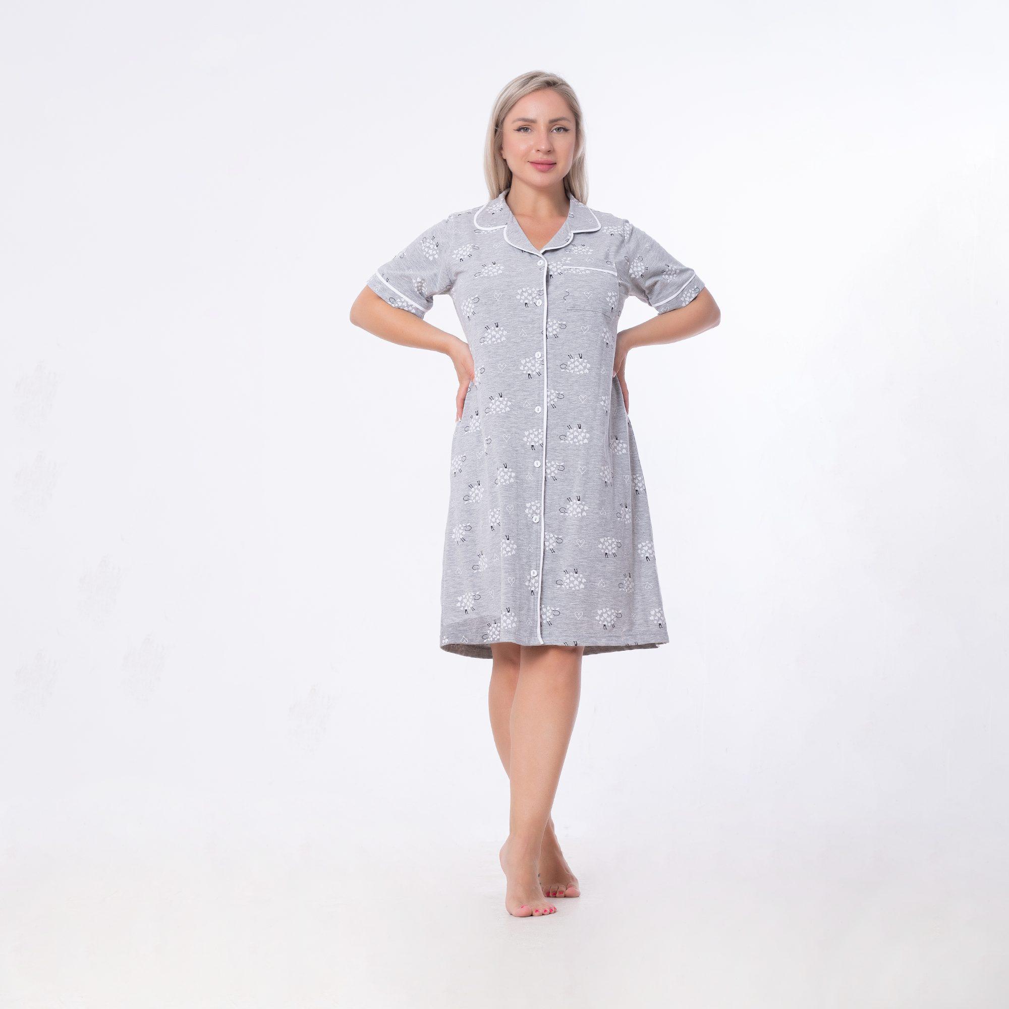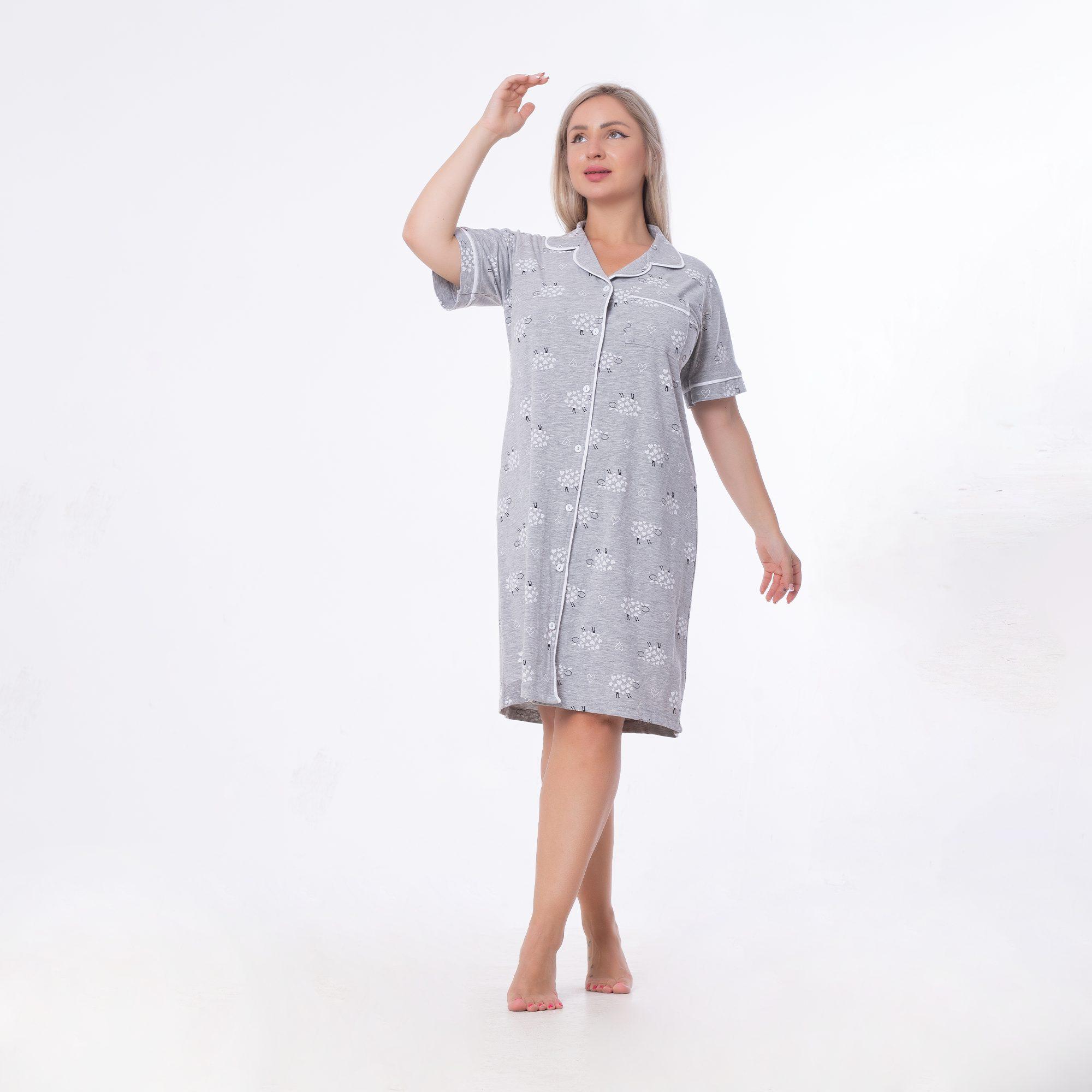 Relax in style with our Gray Printed Summer Cotton Nightgown, featuring a classic lazy swivel print that adds a touch of glamour to your sleepwear. This short half-sleeve dress is made from soft, breathable cotton, making it perfect for warm summer nights. Elegant yet comfortable, it blends timeless design with a relaxed fit for ultimate comfort at home. A unique and cozy addition to your nightwear collection.