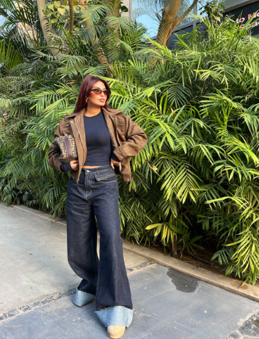 Wide Leg Denim Jeans with Metal Stud Details 2