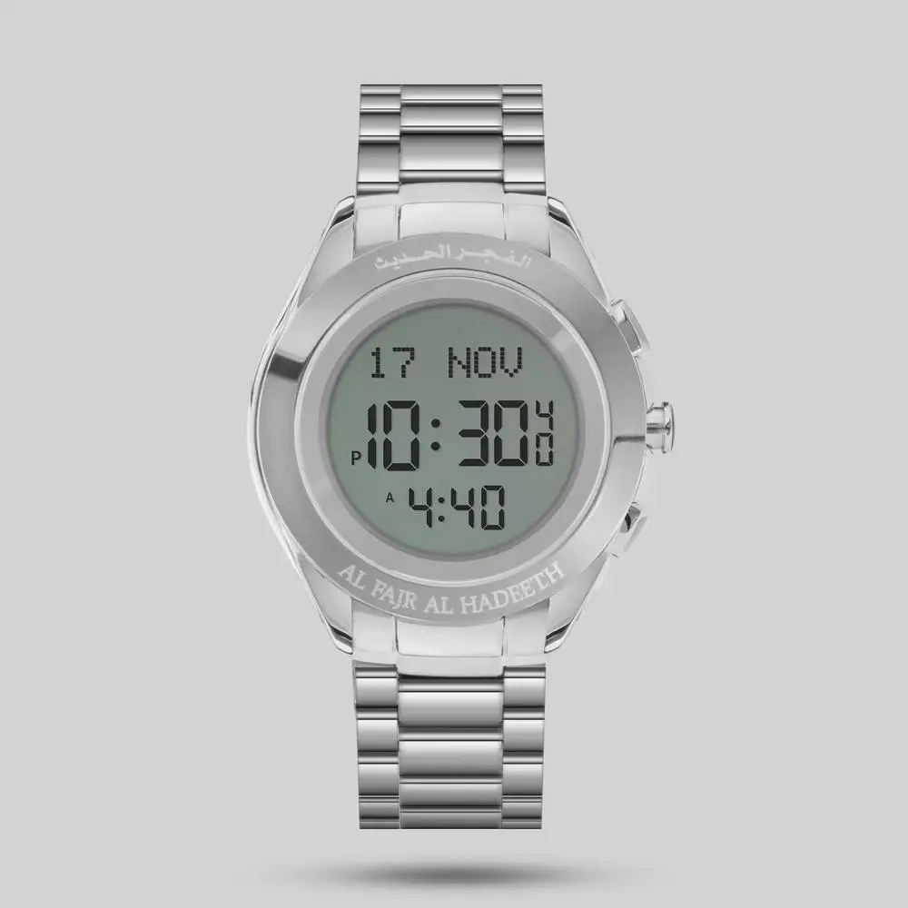 The built-in Qibla compass ensures accurate prayer direction.