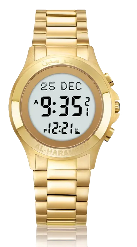 The built-in electronic compass helps you find the Qibla direction at the press of a button, wherever you are.