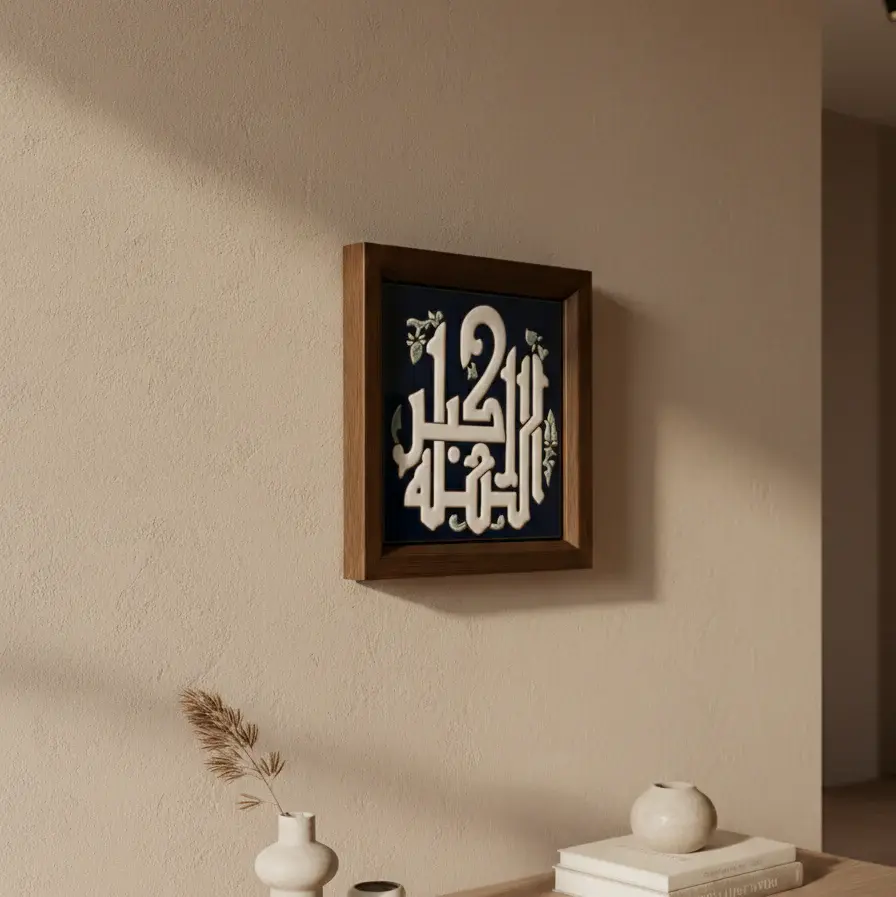 he Allāhu Akbar Calligraphy Frame beautifully embodies the phrase “الله أكبر” — Allah is the Greatest.