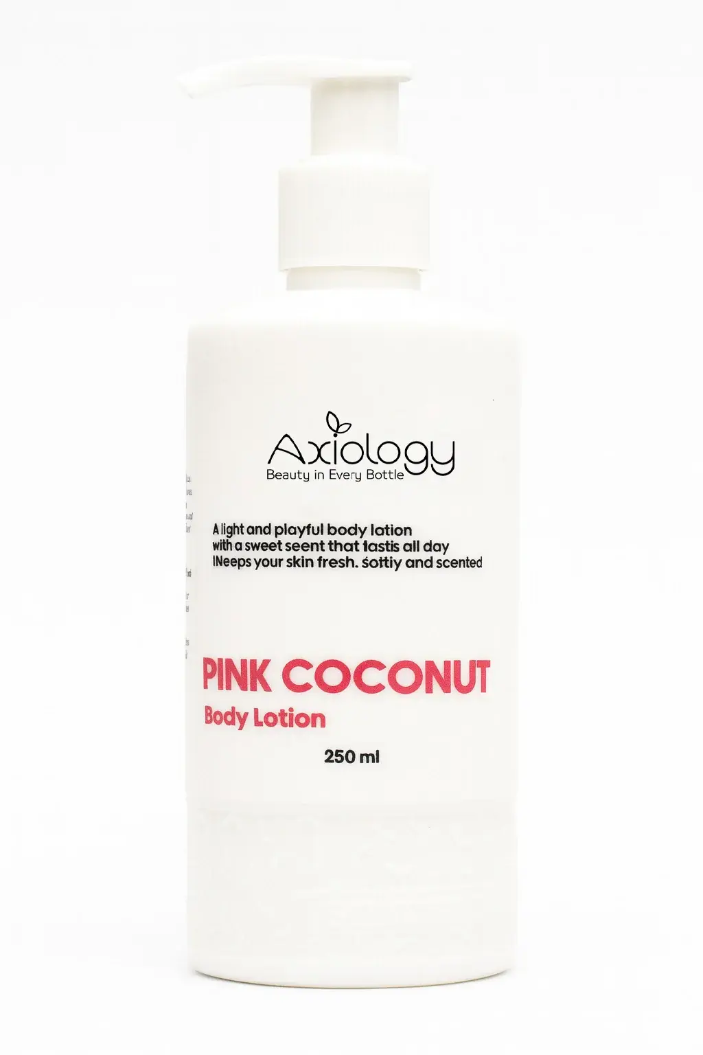 Indulge your skin in tropical luxury with Axiology Pink Coconut Body Lotion, a deeply moisturizing formula infused with the creamy warmth of coconut and a soft, feminine pink twist. Designed to hydrate, soften, and refresh, this body lotion delivers long-lasting moisture while leaving your skin delicately scented.