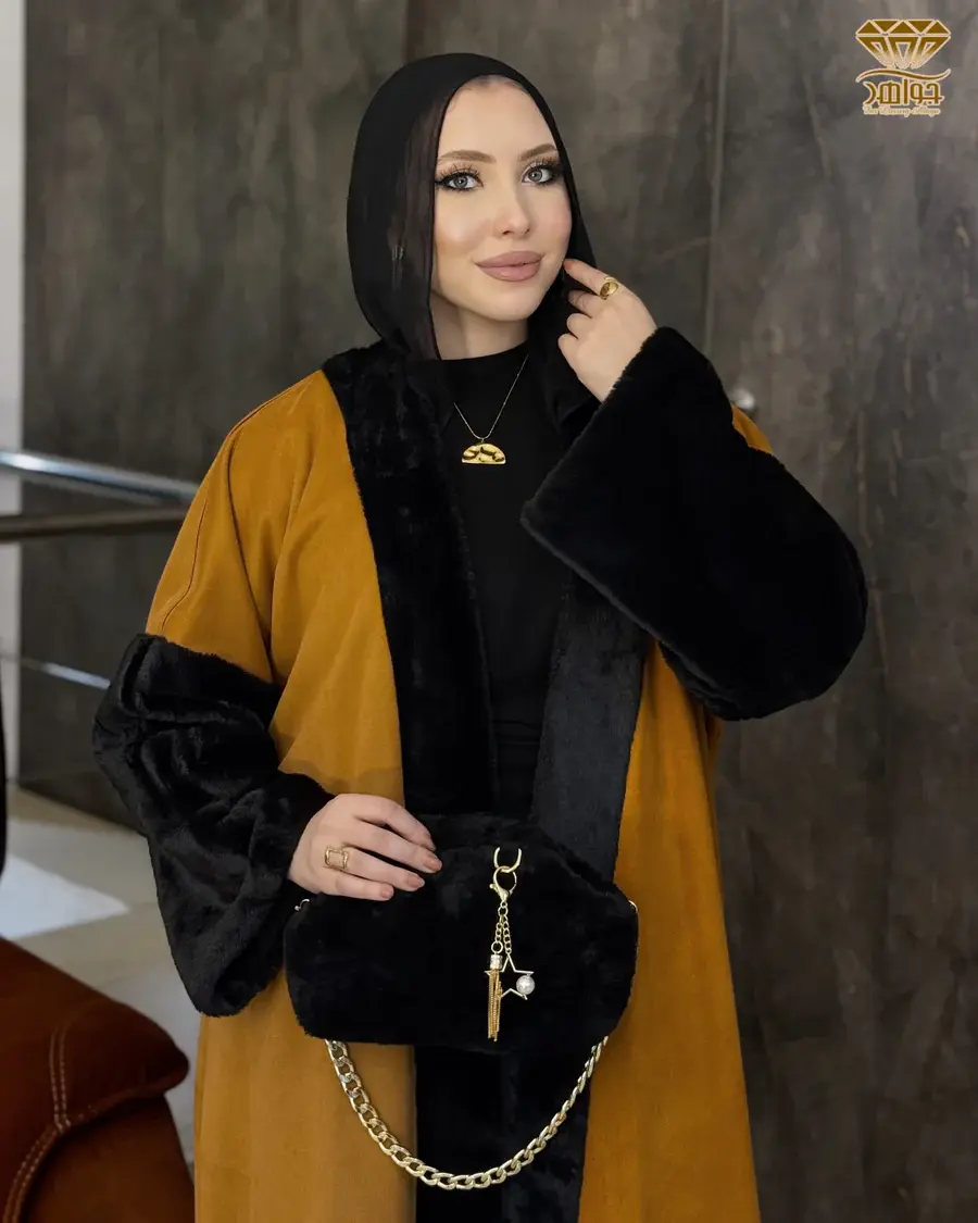 عباية بتصميم Coat مميز بخامة شمواه مستورد، بإضافة Fur ناعم مستورد.