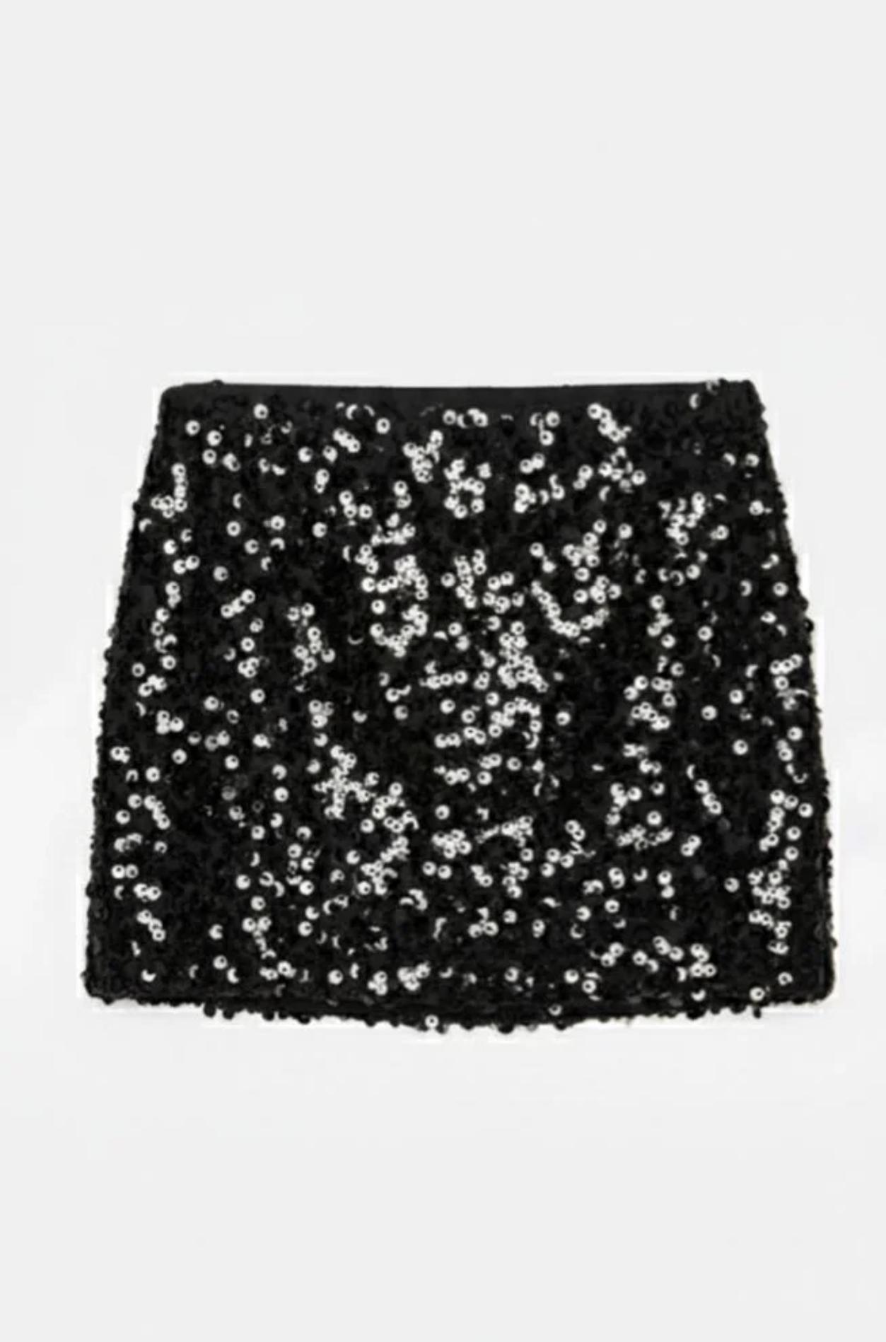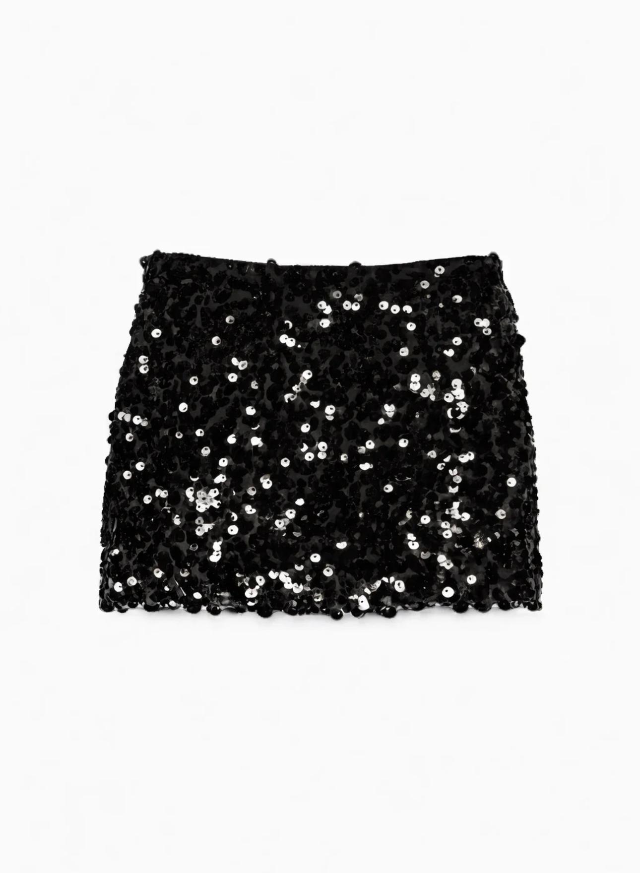 Black Sequin Mini Skirt