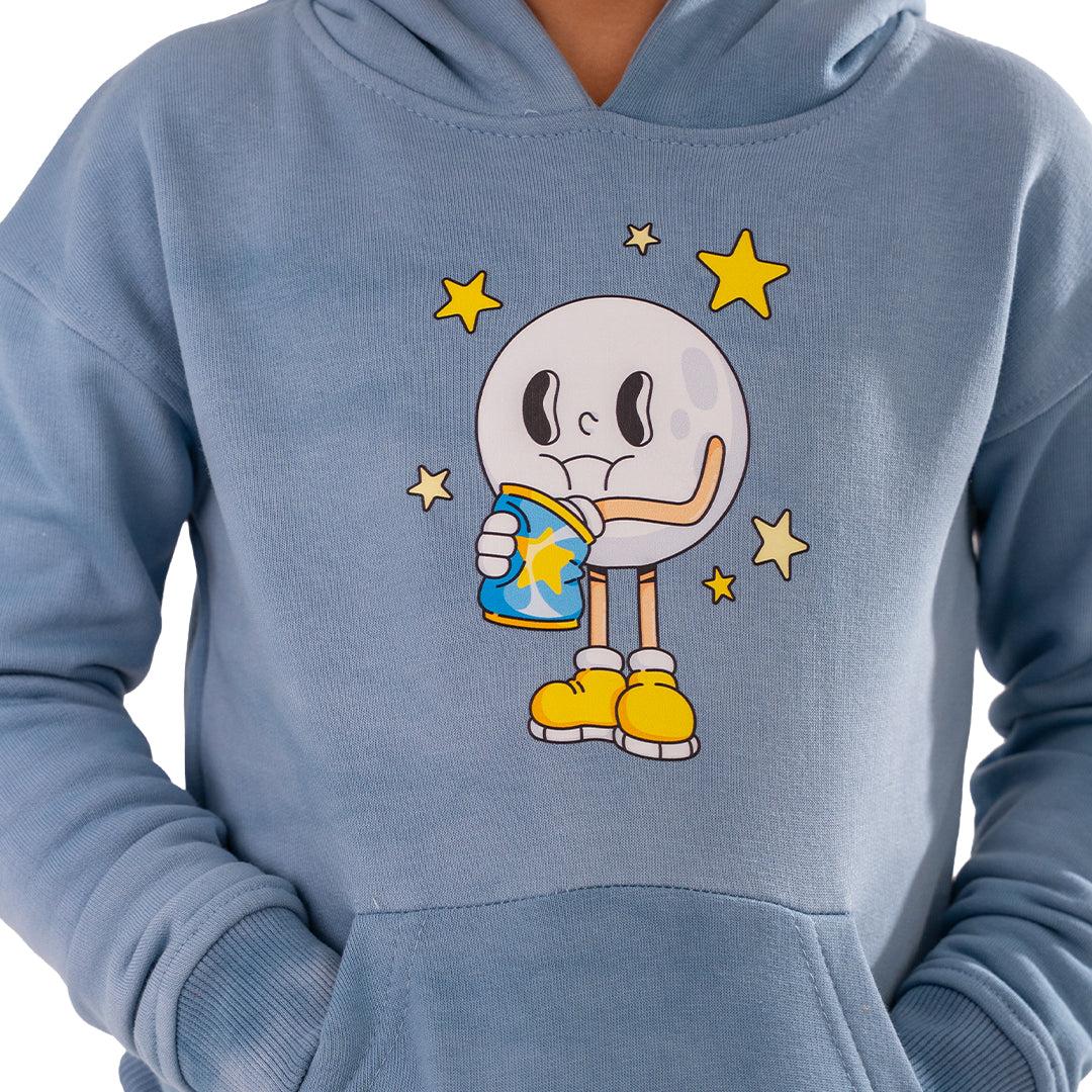 Featuring the "Moon" print, this hoodie captures the energy and spirit of adventure every kid loves, making it a perfect choice for school, playtime, or weekend outings.