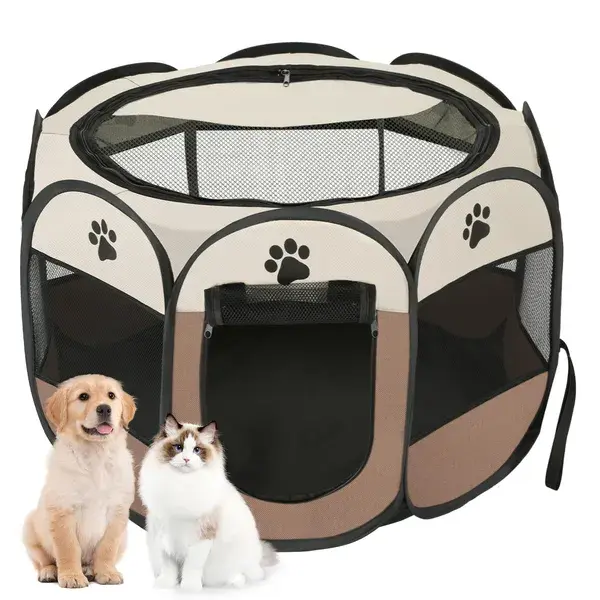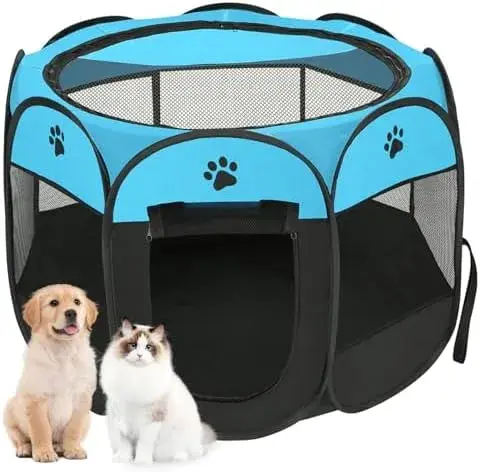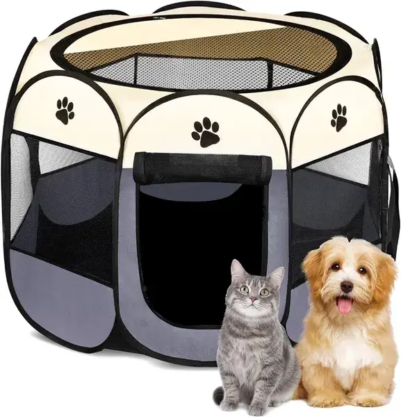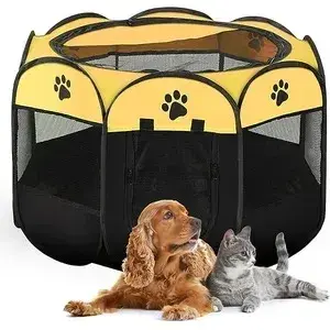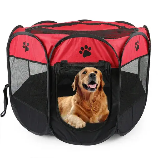 مصنوع من شبكة قابلة للتنفس وقماش أوكسفورد مقاوم للماء مع مساحة داخلية واسعة لمنح حيوانك الأليف مساحة للعب أو النوم. مما يضمن الراحة والحماية من الإصابات غير المرغوب فيها. سهل التركيب وسهل الحمل. قفص الجراء خفيف الوزن ولكنه متين، مما يجعله مثاليًا للسفر والتخييم وسهولة الحركة. يحتوي على 8 نوافذ شبكية لضمان التهوية الجيدة والرؤية.