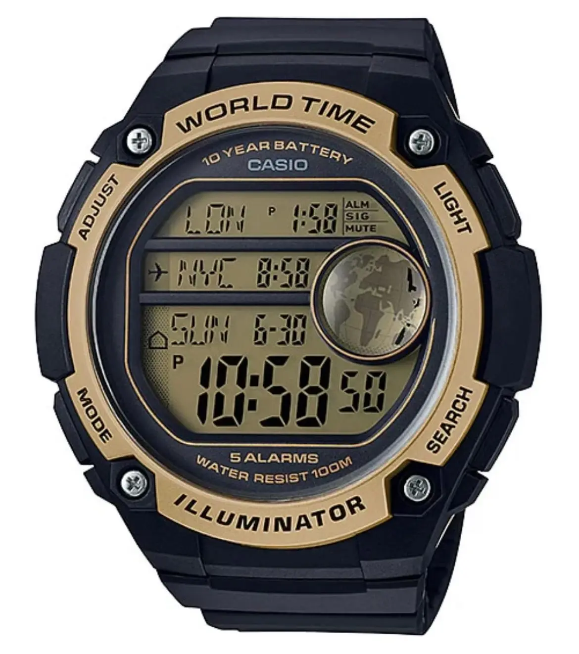 What's In The Box: CASIO Men's Silicone Digital Watch AE-3000W-9AVDF 56 mm Black