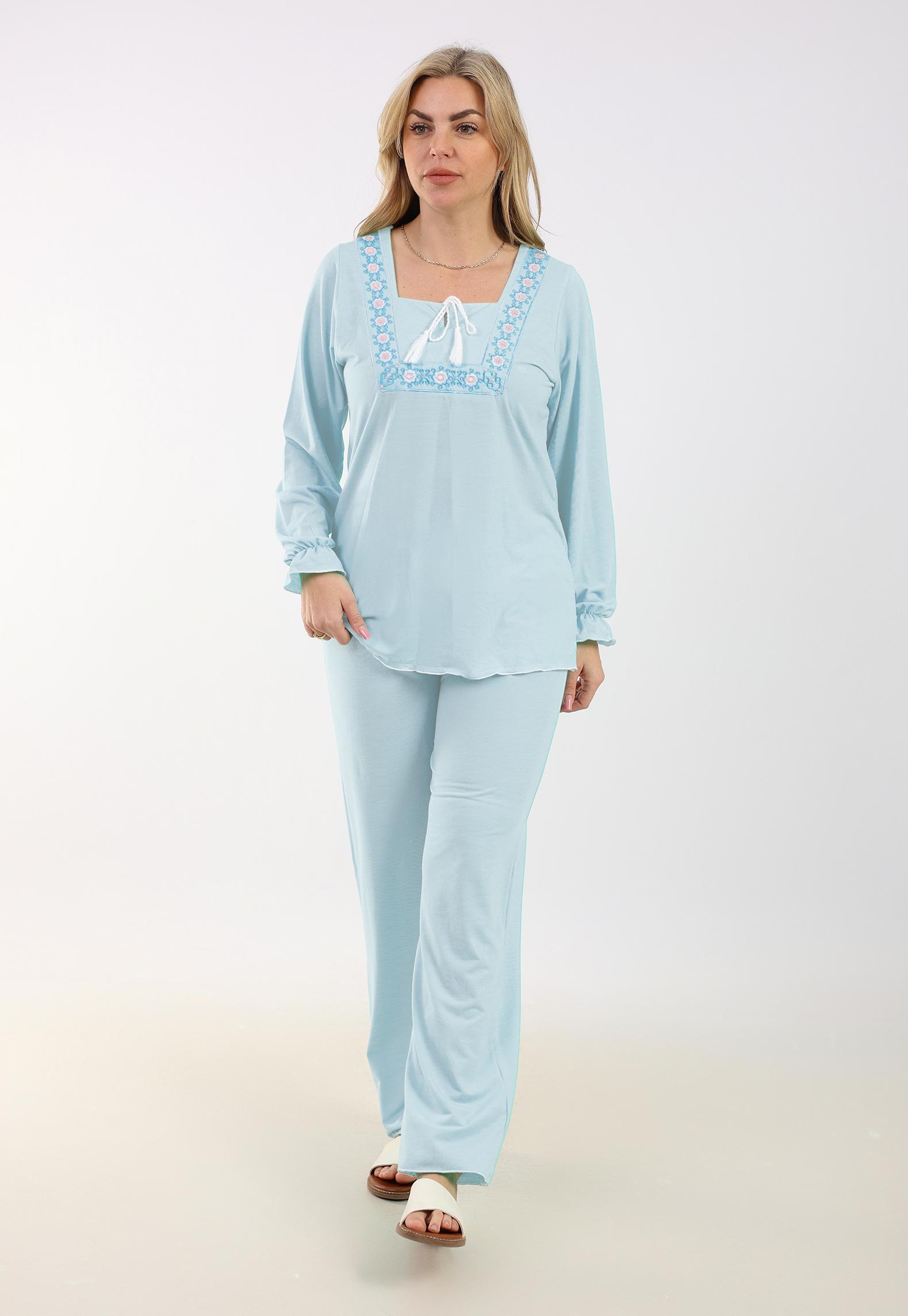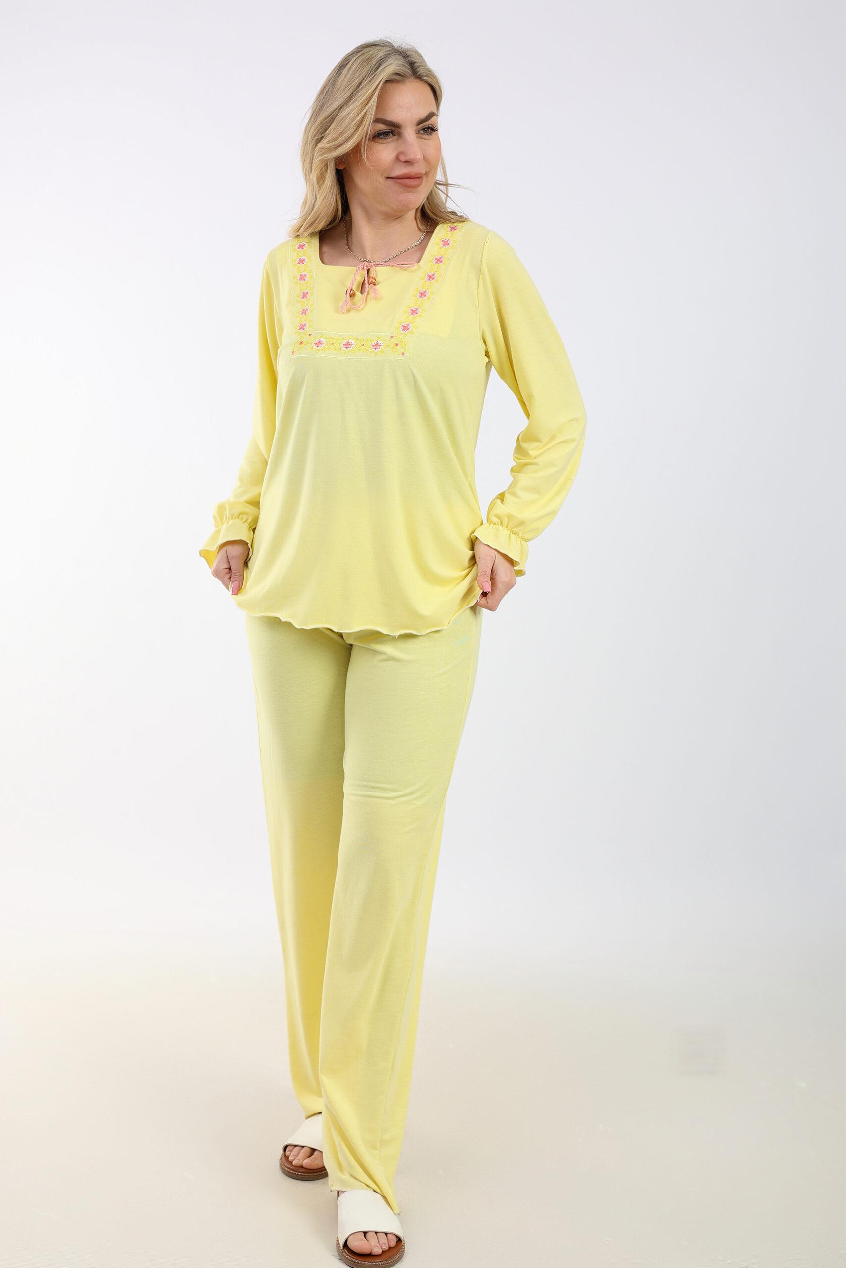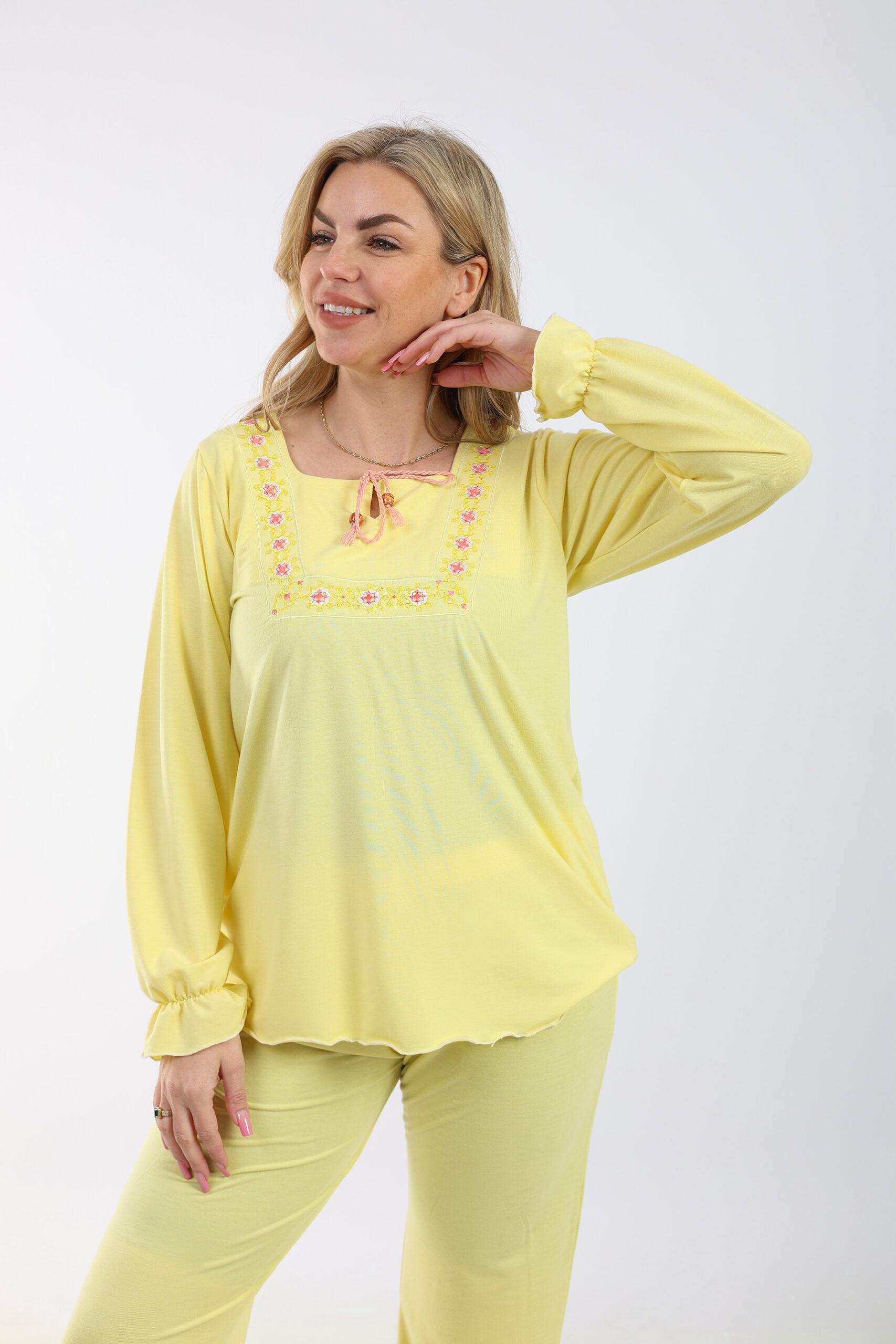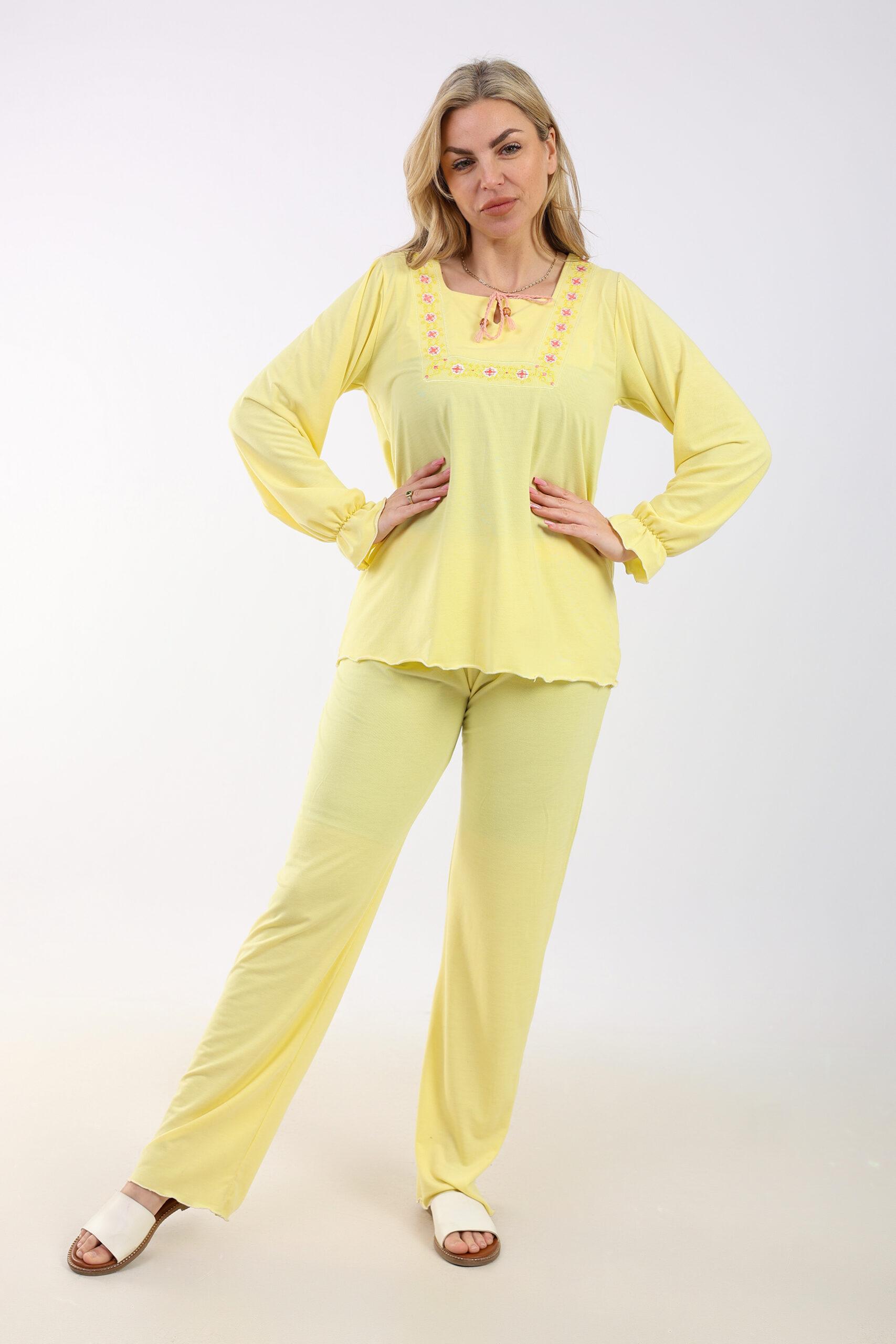 This women’s pajamas set is crafted from soft, comfortable cotton, ensuring a cozy and restful night’s sleep. The set features a stylish design with embroidered details, adding a touch of elegance to your loungewear. Perfect for relaxing at home or enjoying a peaceful night, this pajamas set combines comfort and sophistication seamlessly