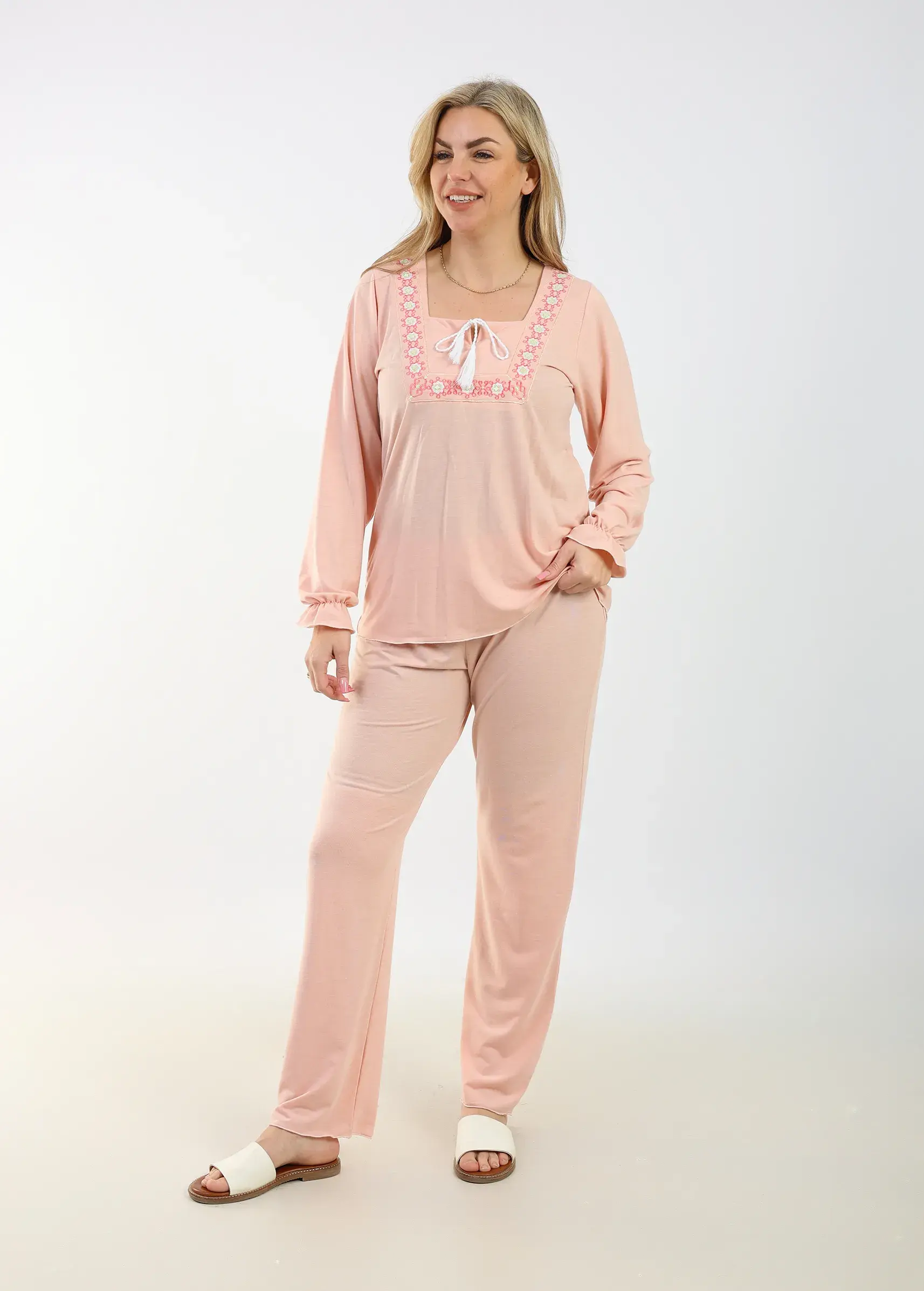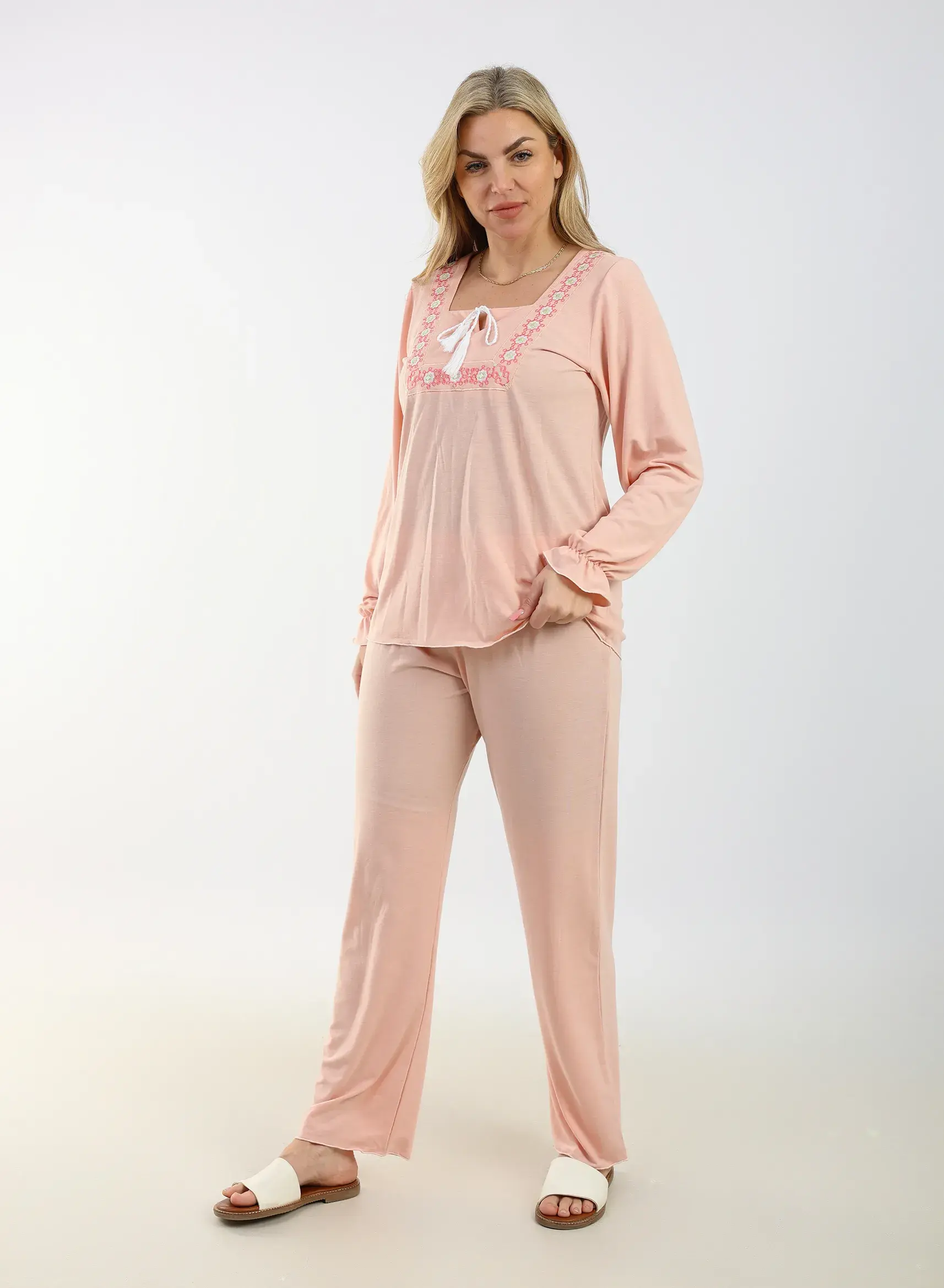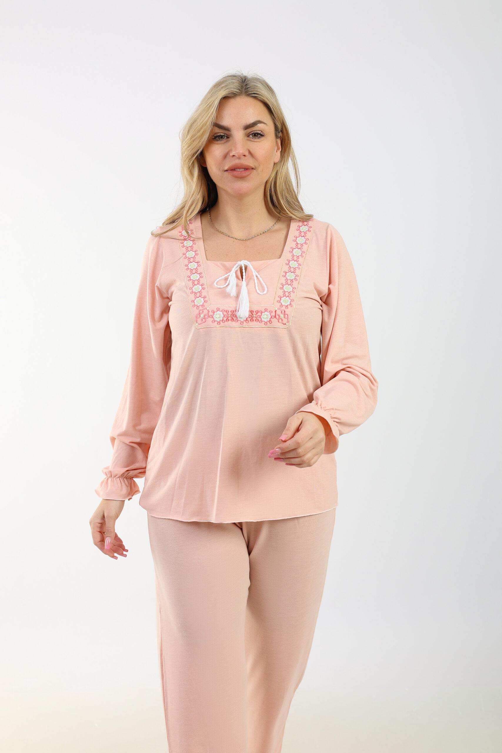 Elegant Cotton Pajama Set – Embroidered Details for Restful Nights