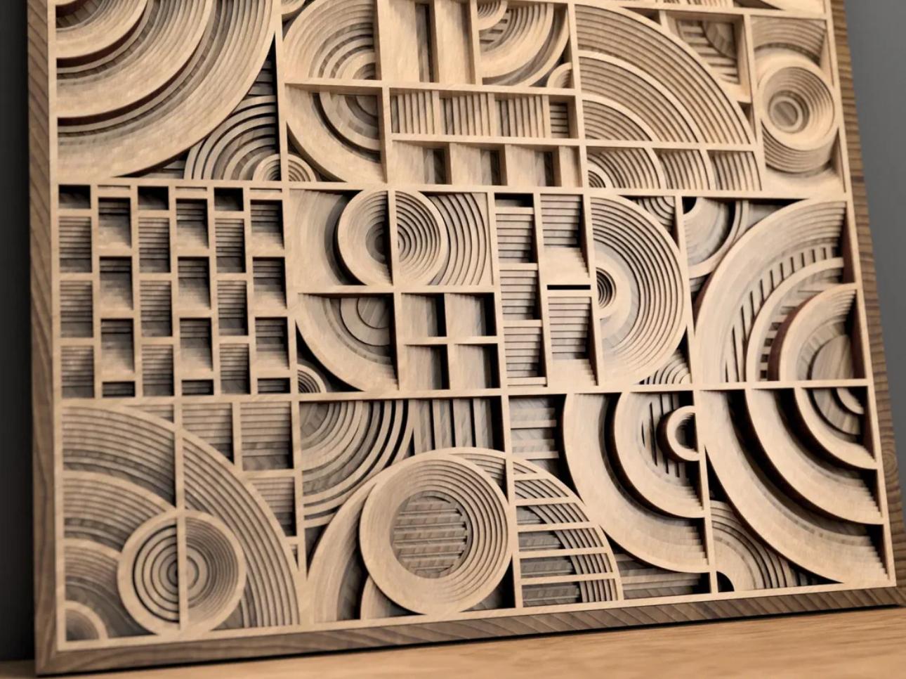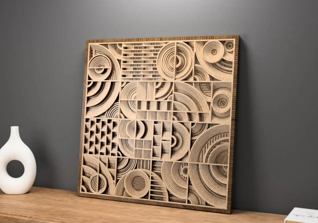 This geometric masterpiece is meticulously crafted by laser-cutting premium wood sheets into intricate patterns of circles, lines, and grids. Each layered detail creates a striking play of depth, light, and shadow, turning mathematical precision into timeless décor. Its modern abstract design makes it a versatile centerpiece – blending seamlessly into contemporary, minimalist, or luxury interiors.