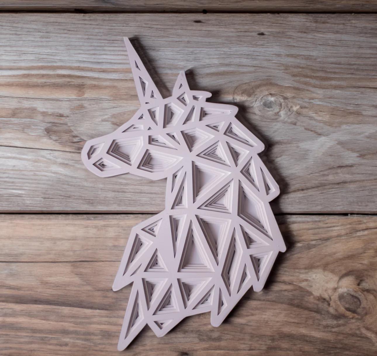 Add a touch of elegance and modern artistry to your space with this stunning geometric unicorn design. Crafted from high-quality layered wood, this 3D wall artcombines precision and creativity for a unique visual effect.