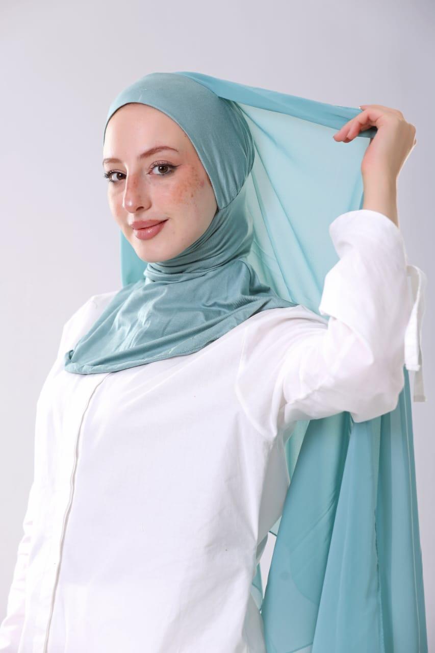 الوصف / طرحه شيفون متخيط فيها بندانة رقبية نينجا