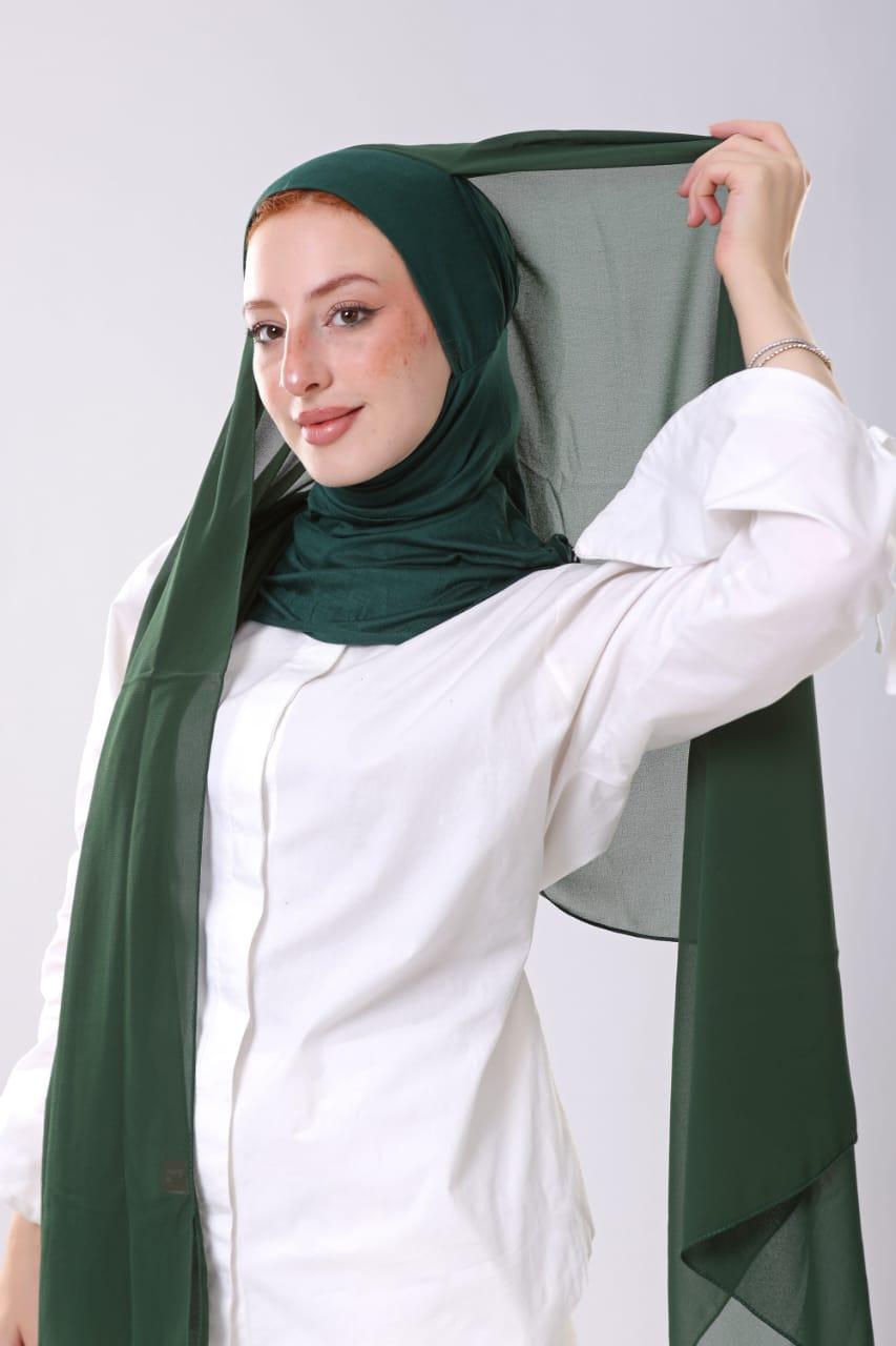 الوصف / طرحه شيفون متخيط فيها بندانة رقبية نينجا