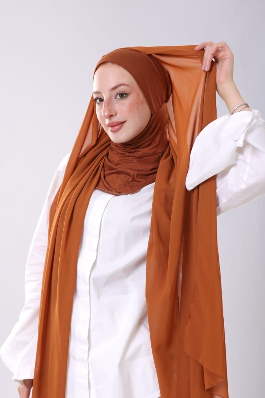 الوصف / طرحه شيفون متخيط فيها بندانة رقبية نينجا