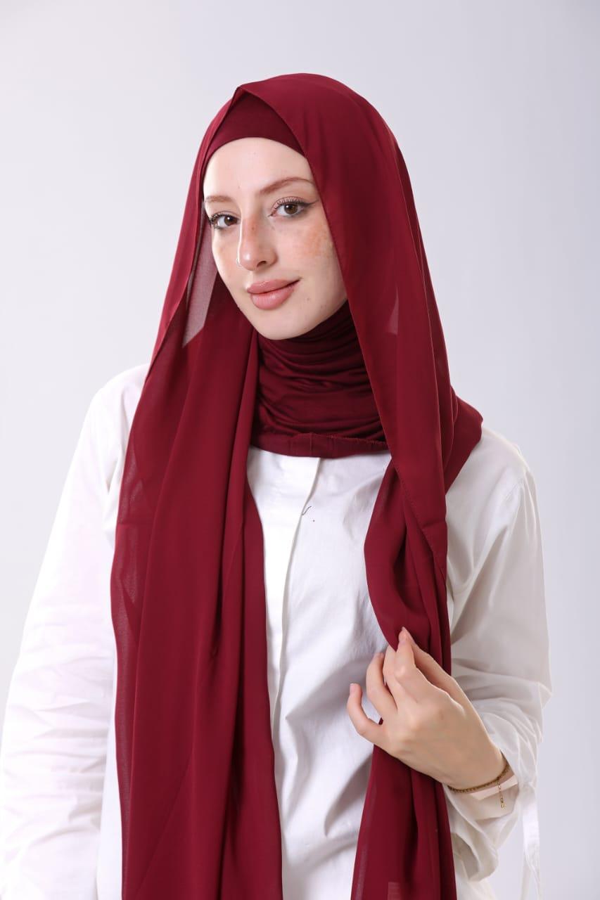 الوصف / طرحه شيفون متخيط فيها بندانة رقبية نينجا