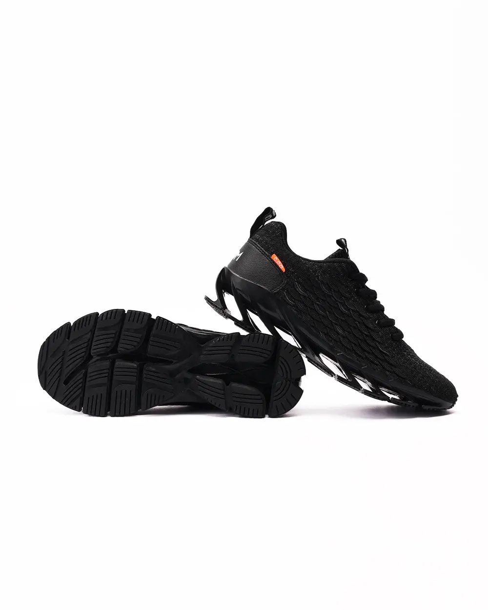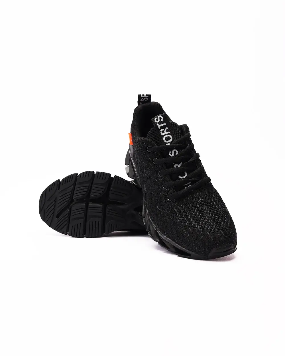 تألق بإطلالة جريئة مع هذا الحذاء الرياضي الأسود بالكامل، الذي يجمع بين التصميم الأنيق والأداء المتطور. يضمن الجزء العلوي المحبوك المحكم التهوية والمرونة، بينما يوفر النعل المنحوت المميز توسيدًا سريع الاستجابة واستعادة للطاقة مع كل خطوة. صُمم هذا الحذاء الرياضي بإغلاق محكم بأربطة، وراحة مبطنة، وعروات سحب لسهولة الارتداء، وهو مثالي للأنشطة الرياضية والنزهات الكاجوال وأسلوب الشارع.