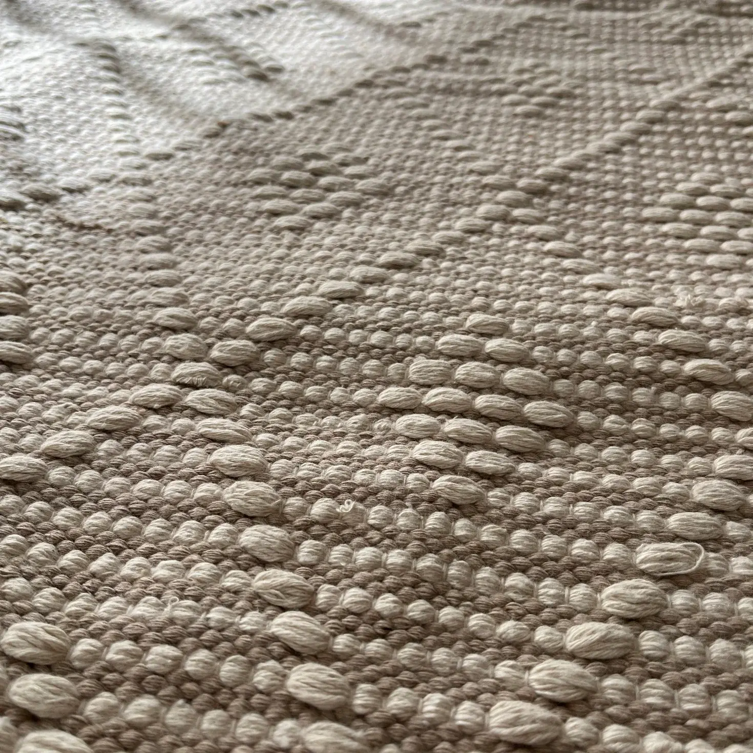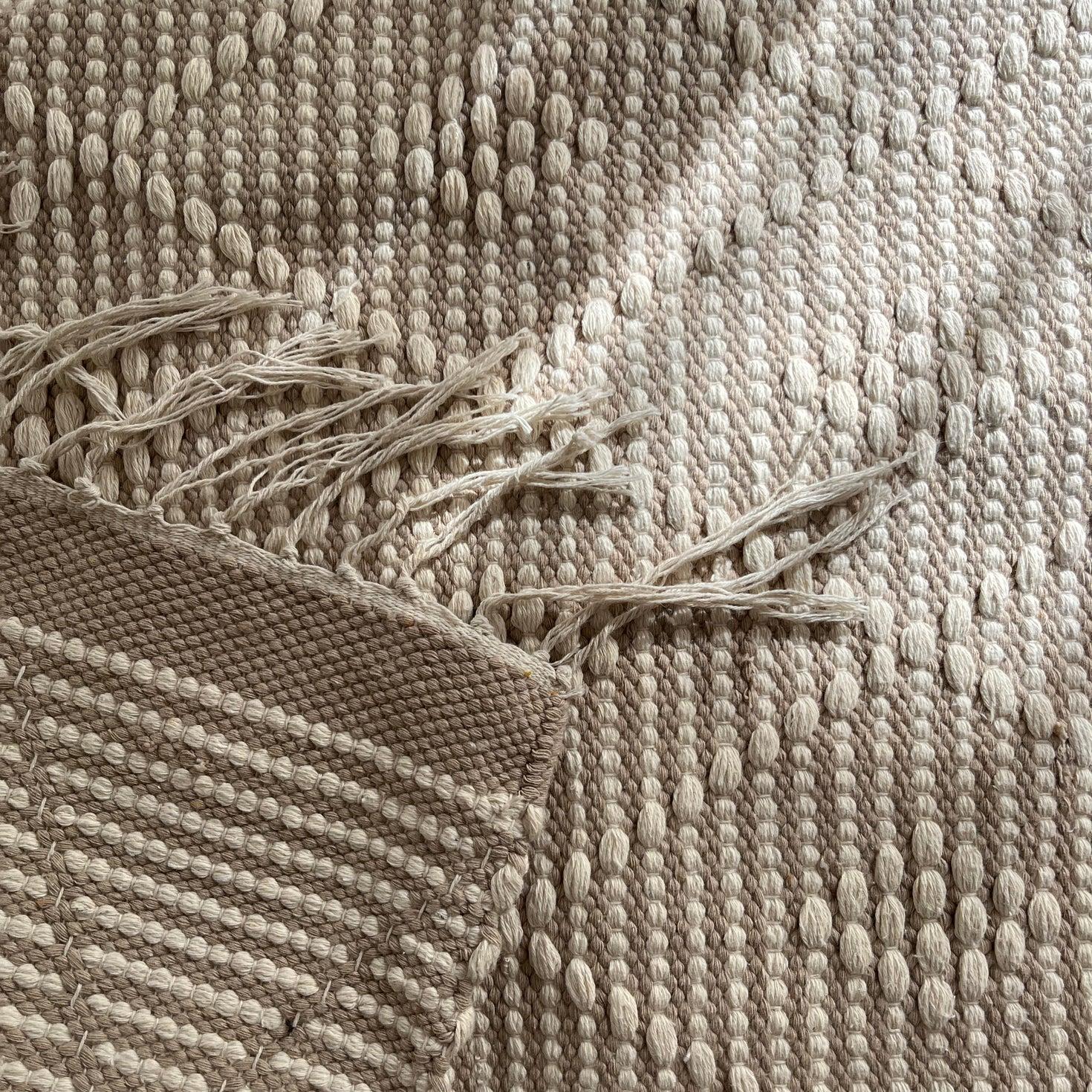Texture: Raised diamond pattern with hand-knotted fringe