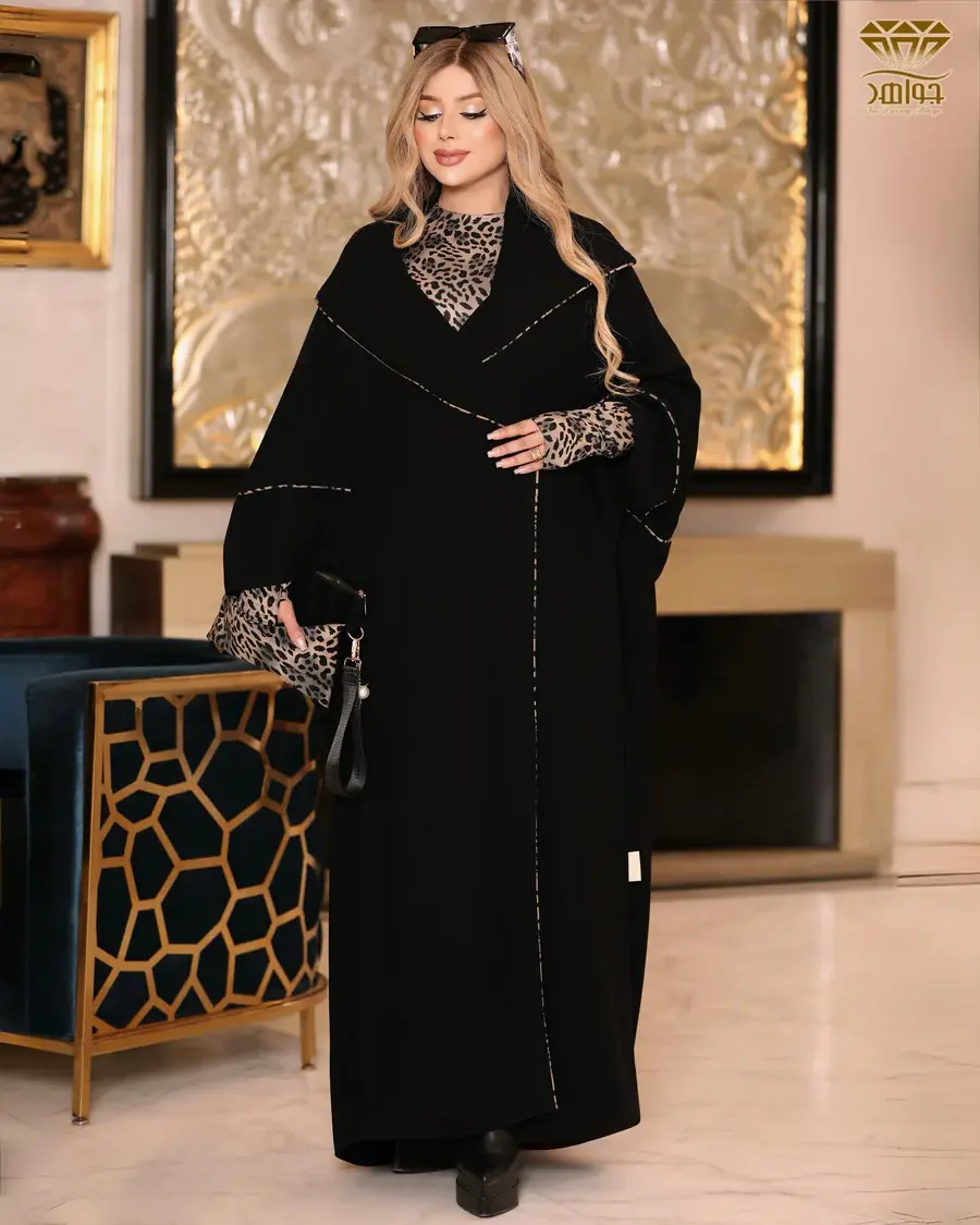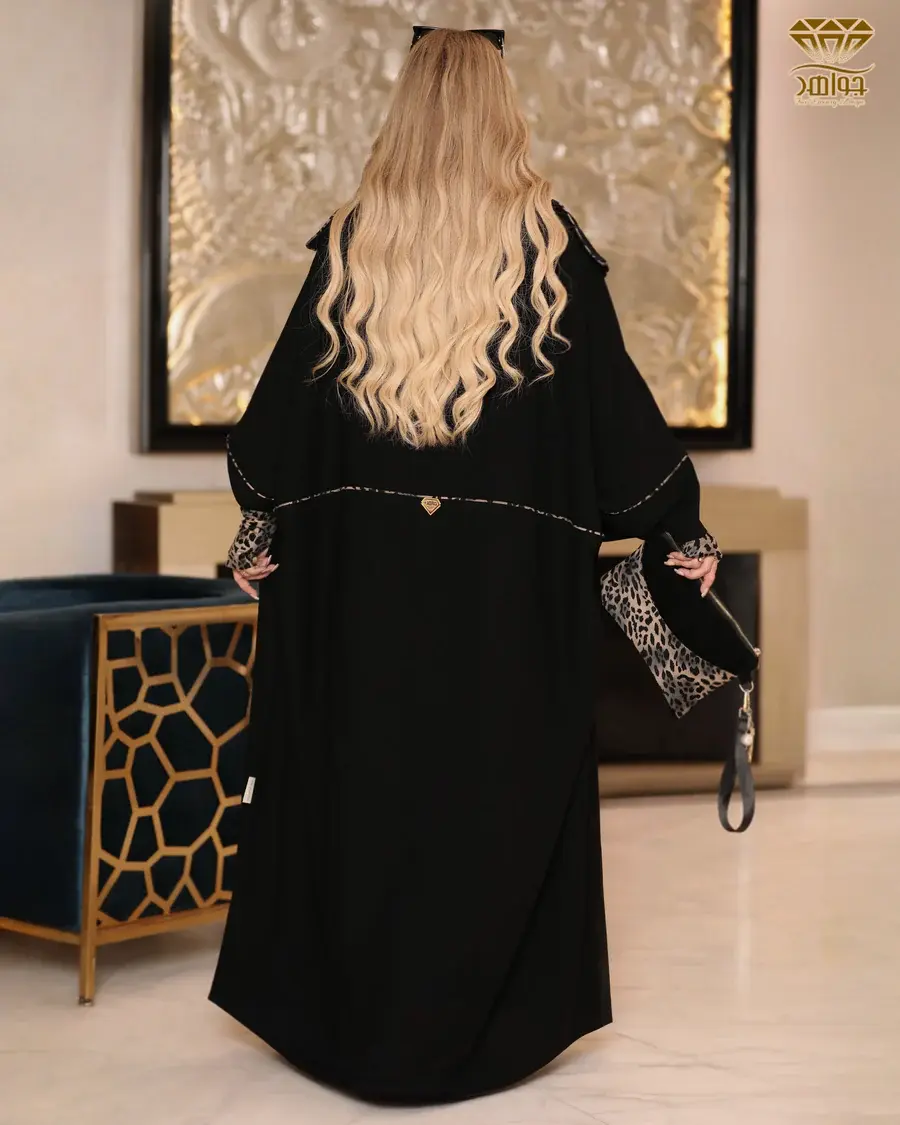 عباية بتصميم أنيق وفخم مصنوعة من خامة برلين مستورد بإضافة بيه جانبي وخلفي بلمسة من Leopard Print بملمس مخملي ناعم وفخم.