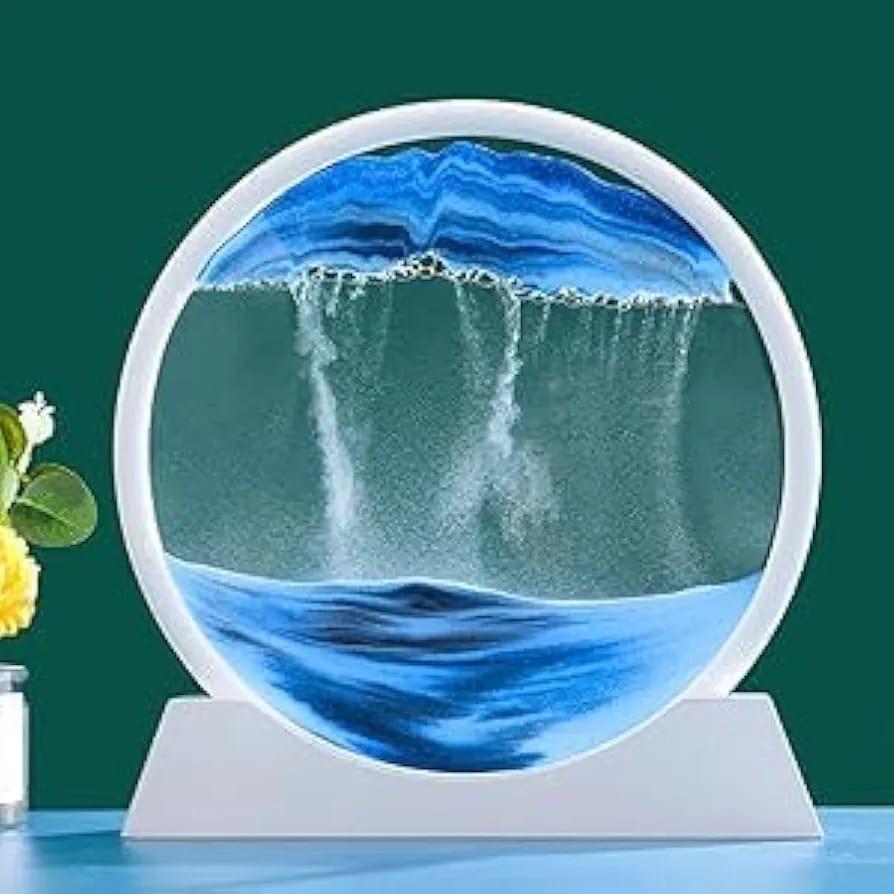 لوحة رمل متحركة ثلاثية الأبعاد ، مقاس 7 بوصات، على شكل ساعة رملية، بإطار دائري، تعرض مناظر رملية عميقة للبحر، وتُ ضفي لمسة جمالية على سطح المكتب أو المكتب المنزلي.