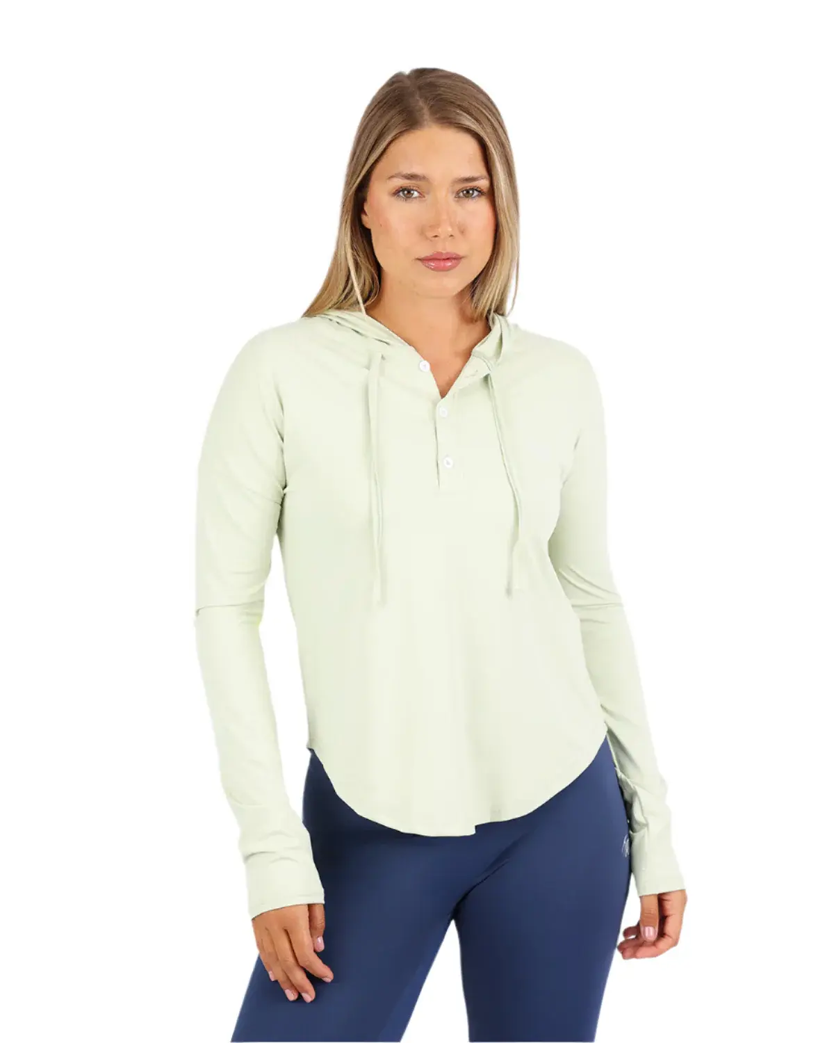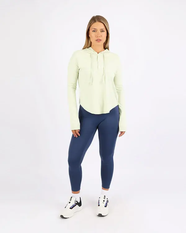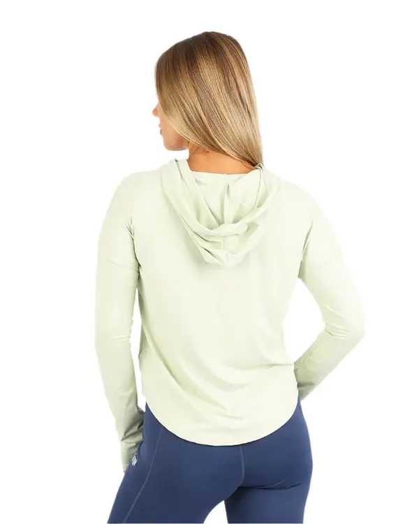 "Embrace tranquility and versatility with our green Breeze Long Sleeve Women's Hoodie-Tee. This stylish and comfortable top offers a perfect blend of a hoodie and a tee, making it ideal for various activities."
