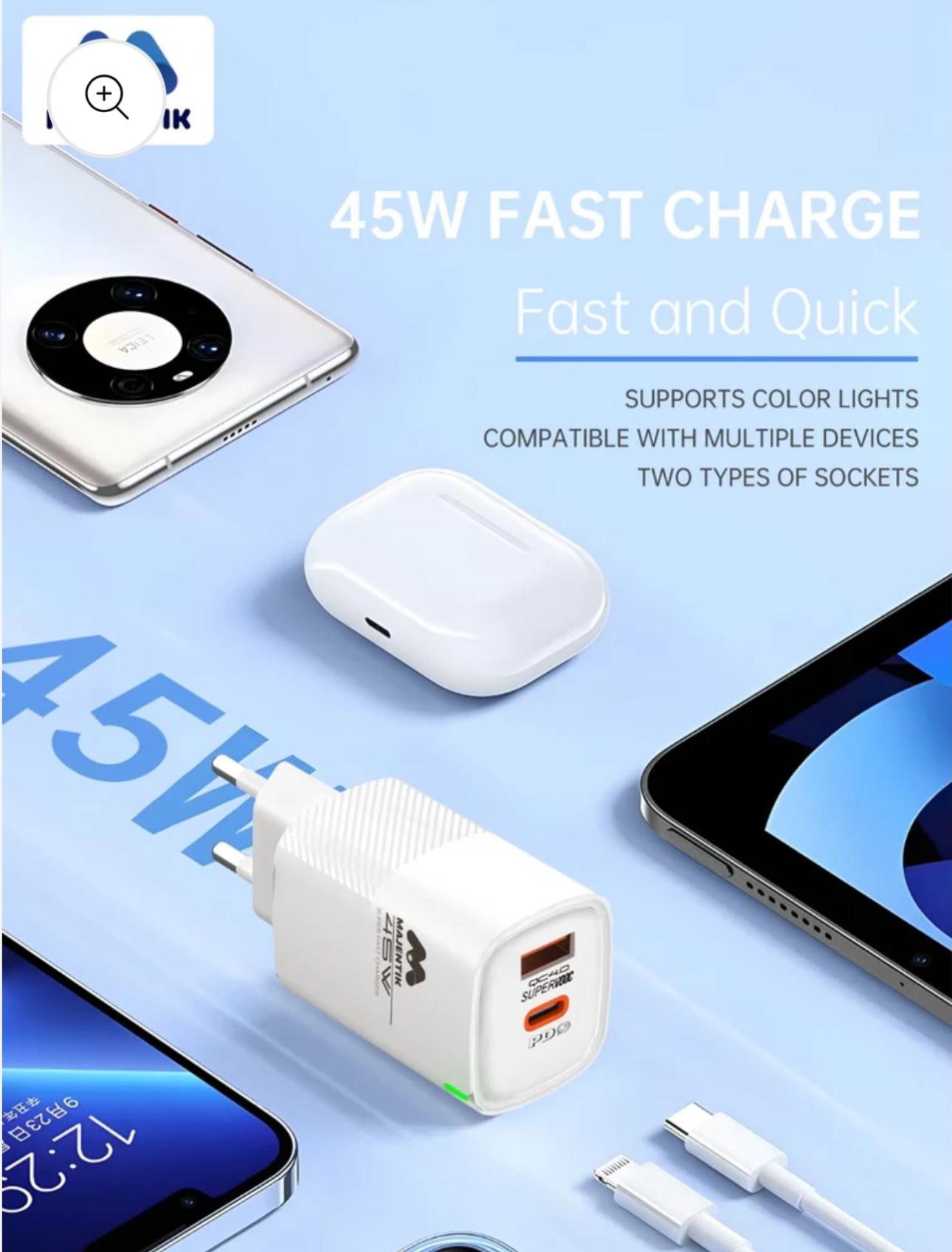 Features of the Majentik 45W Charger:
