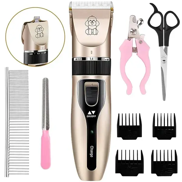 تحتوي على ماكينات قص شعر الحيوانات الأليفة، ٥ أمشاط، مقص أظافر، مشط شعر، كابل بيانات USB، مقص، مبرد أظافر. تساعدك هذه الماكينة على العناية بفرو وأظافر حيواناتك الأليفة باحترافية، مما يعزز نعومة وسلاسة شعرها وفرائها.