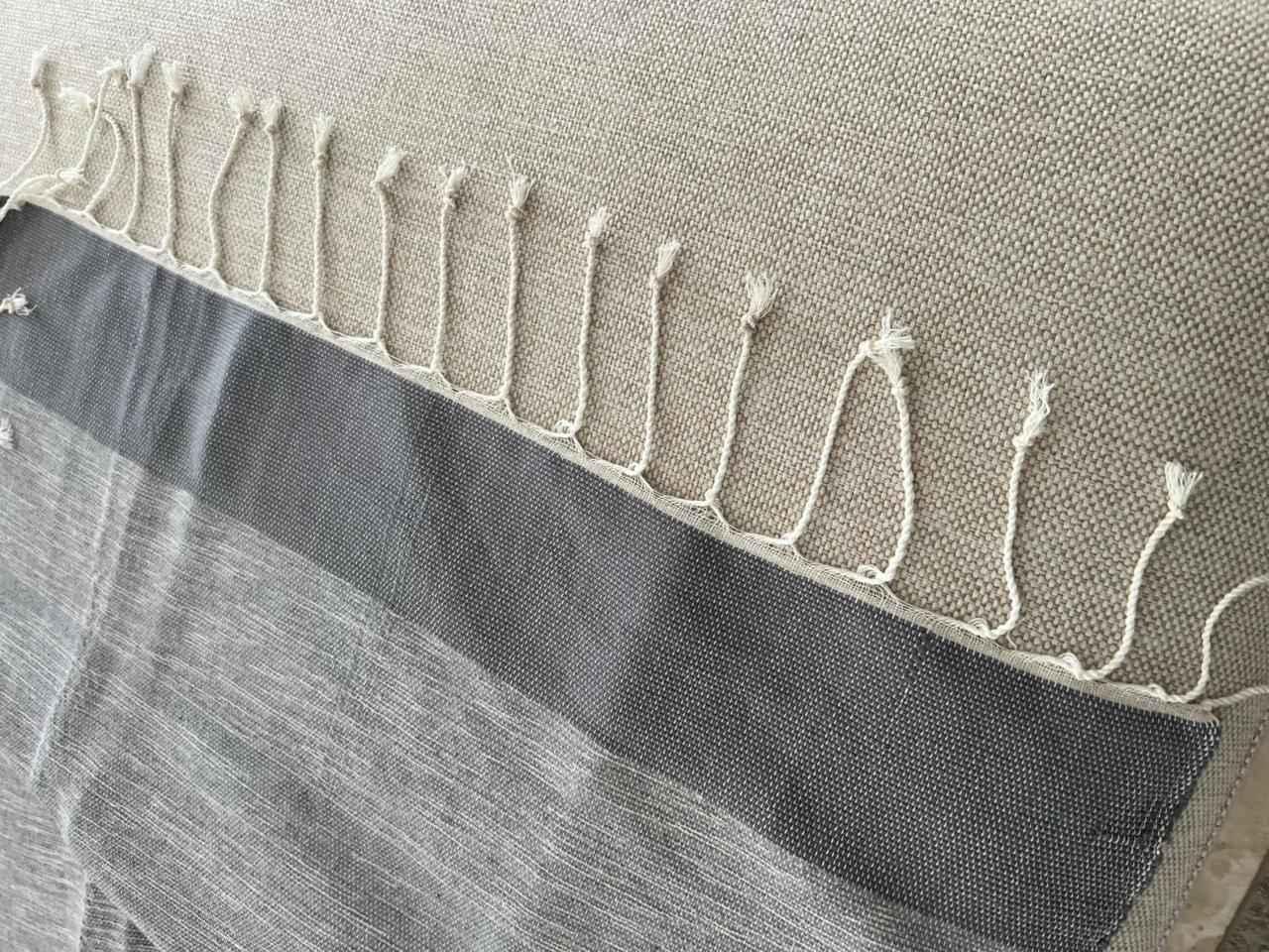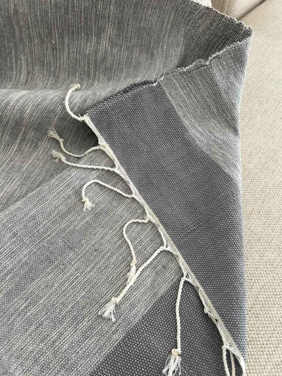 A sophisticated dual-tone throw in soft gradients of slate and ash grey, featuring a fine woven texture that brings depth and calm to any living space. Finished with neatly twisted fringes, it combines contemporary minimalism with artisanal craftsmanship. Ideal for layering over neutral sofas or bedding to add an effortless, elevated touch.