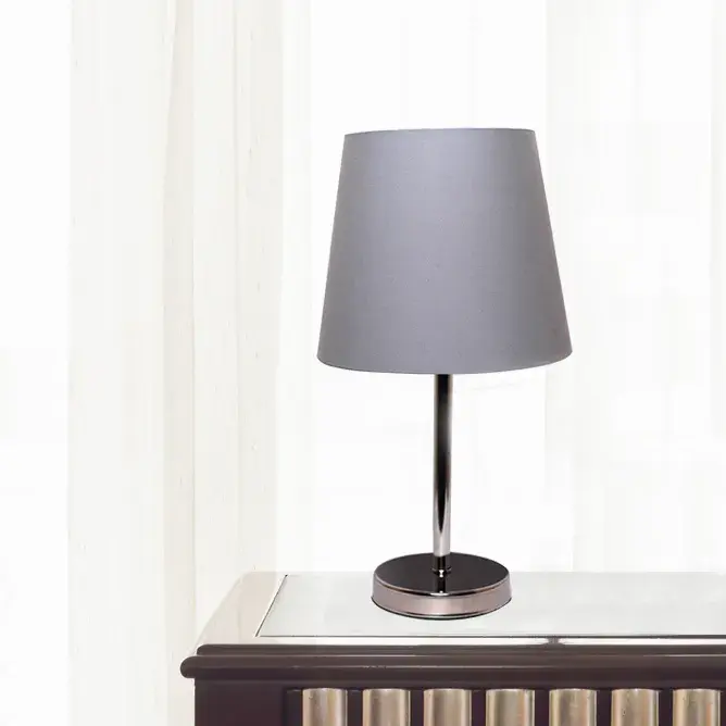 The modern table lamp blends style and functionality with its silver metal base and soft grey lampshade. Designed for versatility, it brings a touch of modern elegance to bedrooms, offices, or living rooms while offering cozy, ambient lighting for everyday comfort.