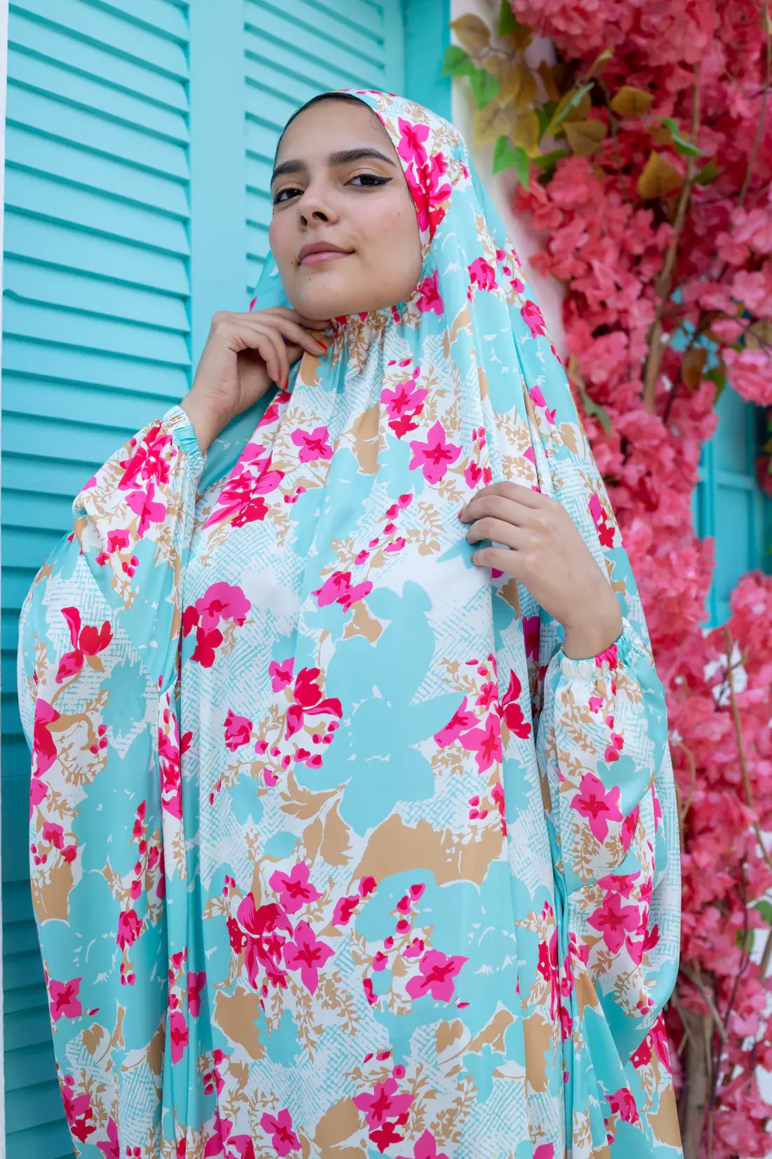 TURQUOISE BLOSSOMS PRINT SATIN MALHAFA ISDAL