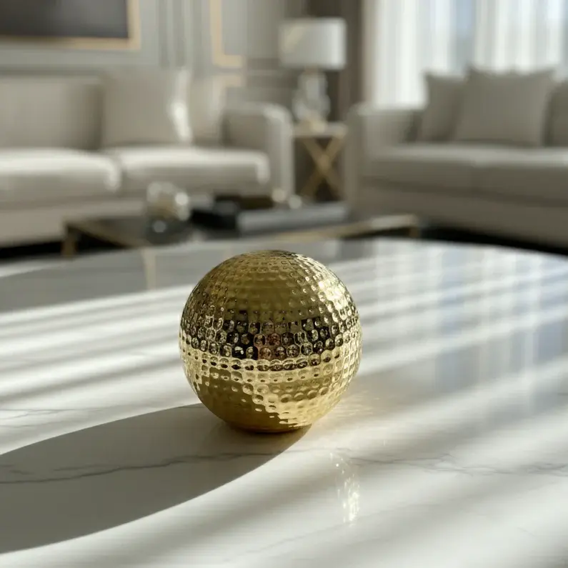 The Metallic Dimple Sphere is a striking decorative accent that blends artistic form with modern luxury. Designed with a mirror-polished finish, its textured dimple pattern transforms a simple sphere into a display-worthy statement piece.