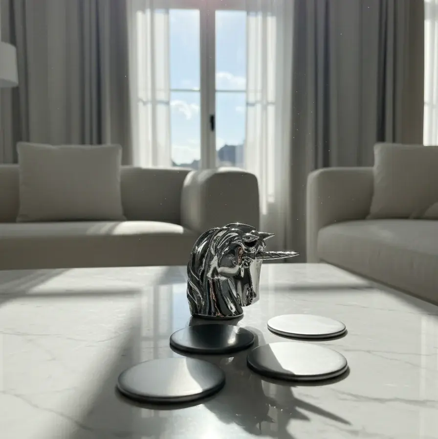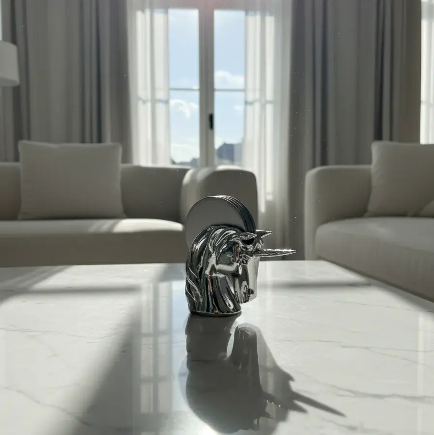 The Silver Unicorn Coaster Holder embodies a perfect balance between functional décor and bold modern expression. With its mirror-polished chrome finish and sculpted unicorn design, this unique holder brings a luxurious and eye-catching accent to any interior.