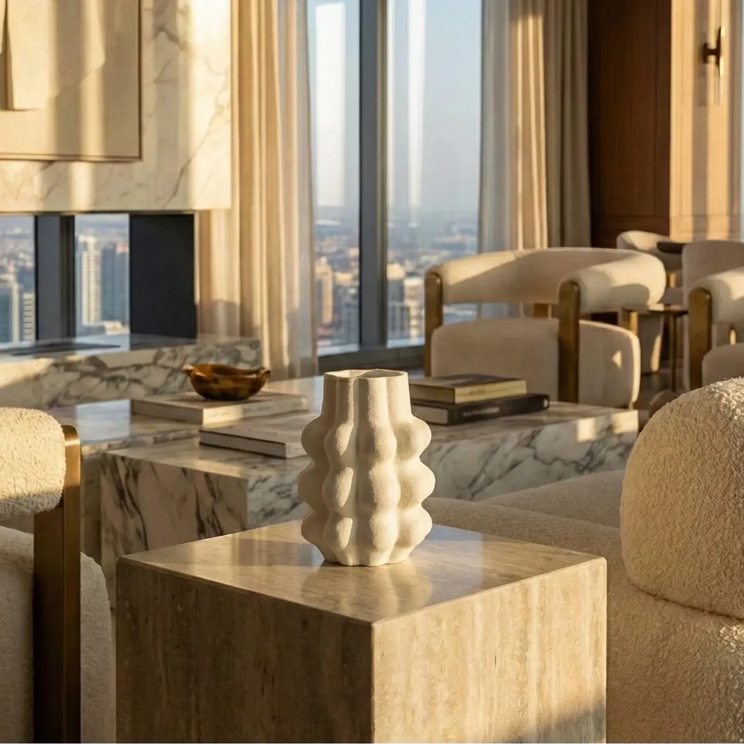 A modern decorative vase defined by its soft, cloud-like geometry and sculpted surface. The organic form creates visual depth and a tactile presence, making it a striking accent piece that balances bold design with subtle elegance. Its minimalist silhouette allows it to stand out while still blending effortlessly into contemporary interiors.