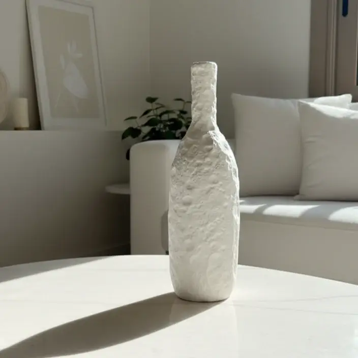 A white pottery inspired by the surface of the moon. Its spherical form with crater-like detailing adds an artistic and modern touch to interiors, making it a standout piece on coffee tables, consoles, or shelves.