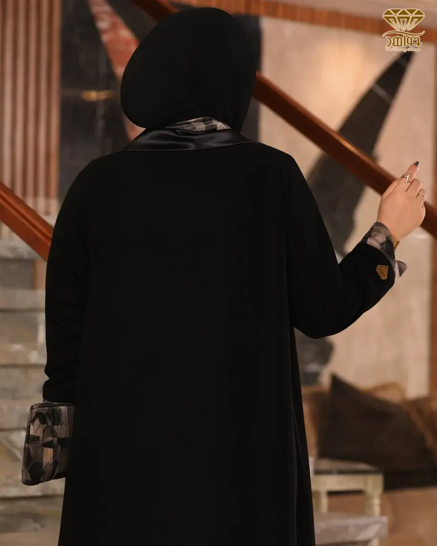 عباية أنيقة بتصميم COAT عصري مصنوعة من خامة برلين مستورد،بإضافة بطانة داخلية ناعمة بالكامل للتصميم، ومزودة بياقات وأكمام من المخمل الناعم الفخم والمميز.