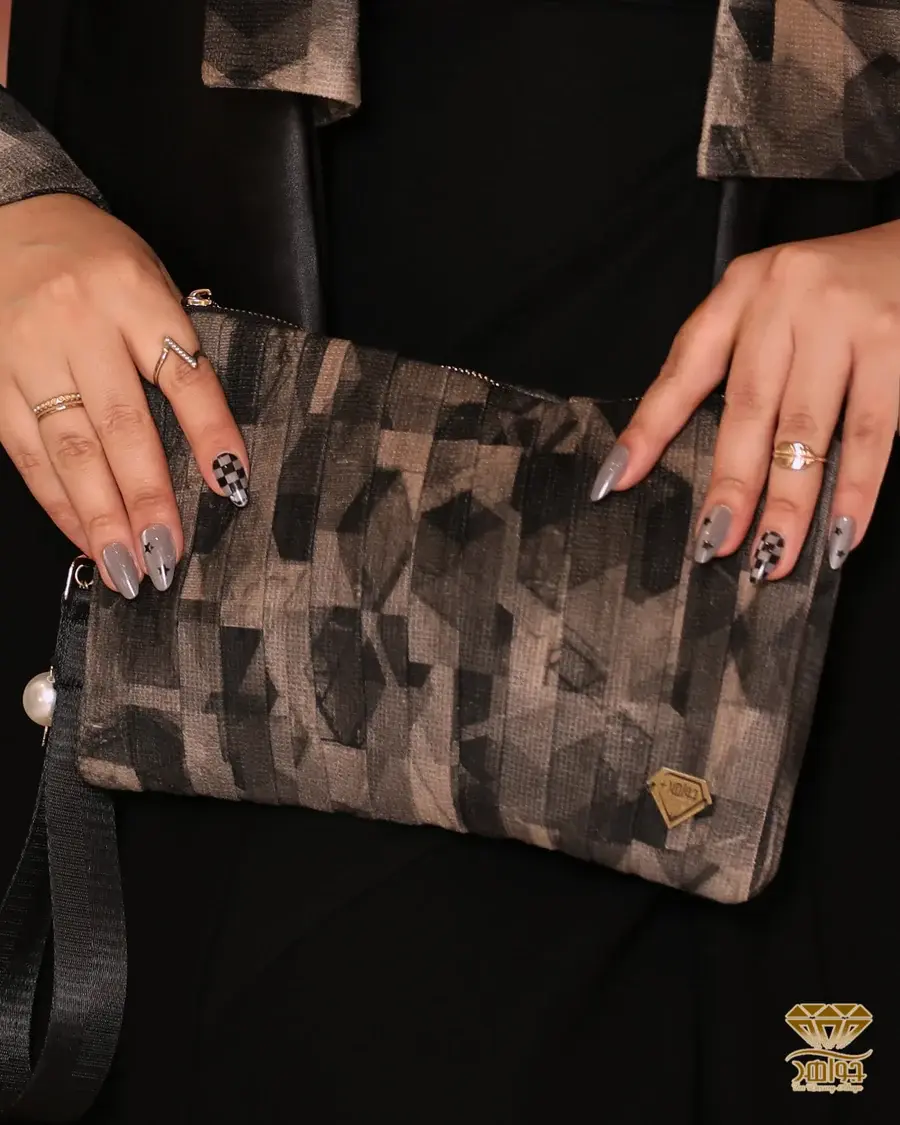 • إذا كانت العباية تحتوي تفاصيل جلدية: امسحي الجلد بقماش جاف فقط دون غمره بالماء.