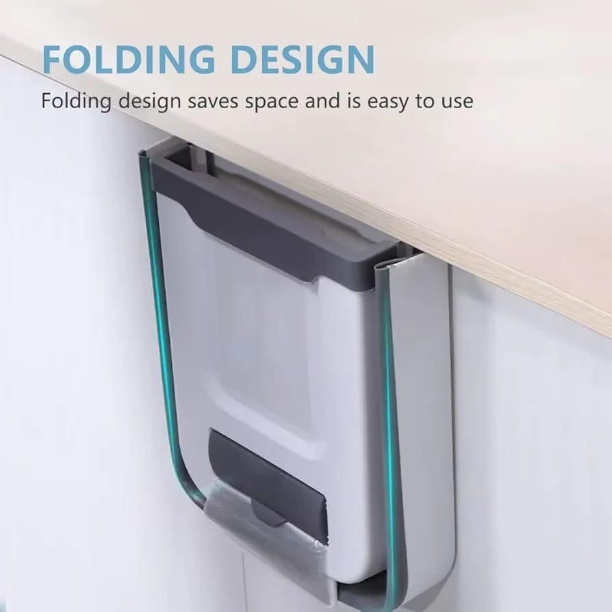سلة مهملات بلاستيكية صغيرة قابلة للطي، يمكن تعليقها في المطبخ، أو على باب الخزانة، أو في السيارة، أو غرفة النوم، أو الحمام؛ سعة 9 لترات؛ مصنوعة من بلاستيك السيليكون.
