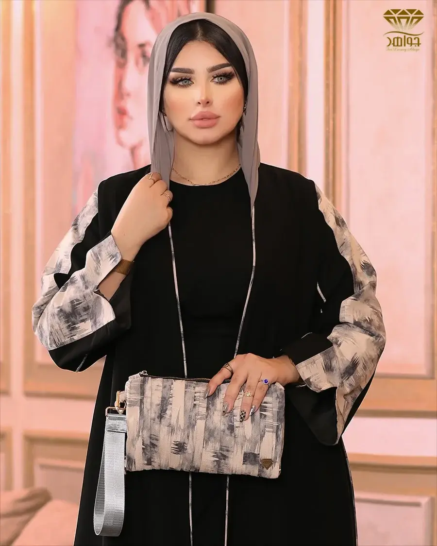 • إذا كانت العباية تحتوي تفاصيل جلدية: امسحي الجلد بقماش جاف فقط دون غمره بالماء.
