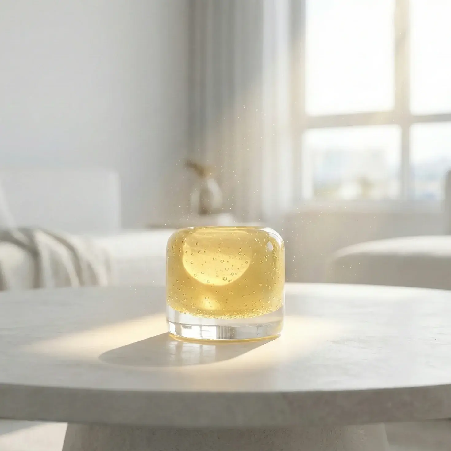 Color Palette: Soft yellow with clear glass base and natural bubble texture