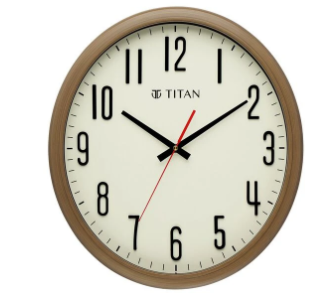 Titan Brown Wooden Texture Oval Clock with White Dial and Silent Sweep Technology 37 cm x 41.5 cm (Large)