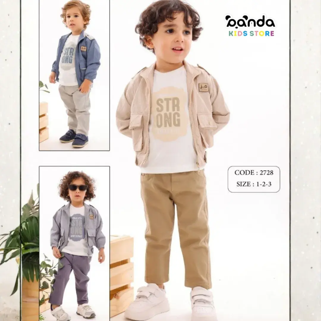 طقم خروجي 3 قطع جاكيت جيبين بادج من جود