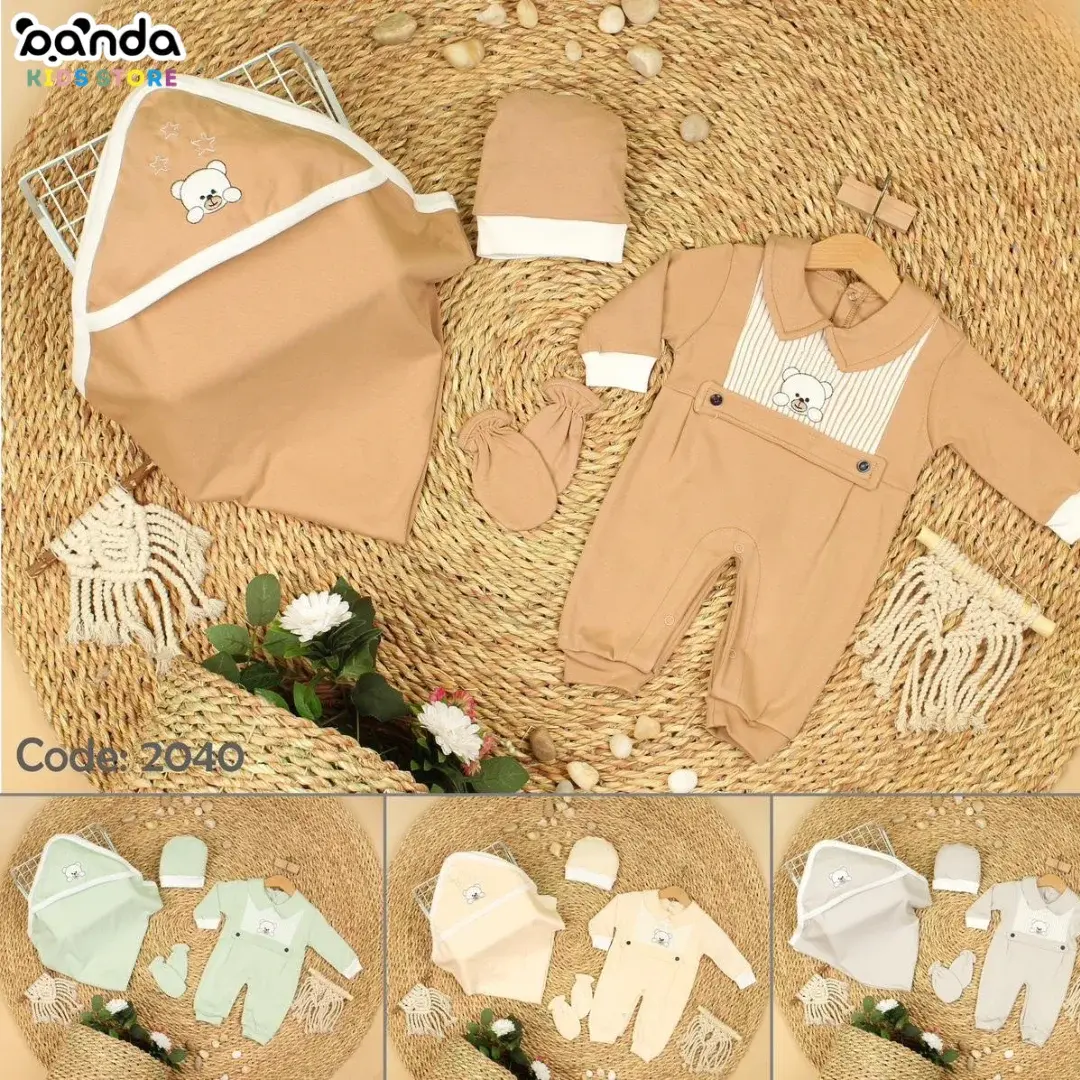 طقم مواليد مستشفى وسبوع قطن ٤ قطع اقتصادي ، كوفرتة وسلوبيت وطاقية وجوانتي ، بيبي سمايل ، دبدوب لياقة