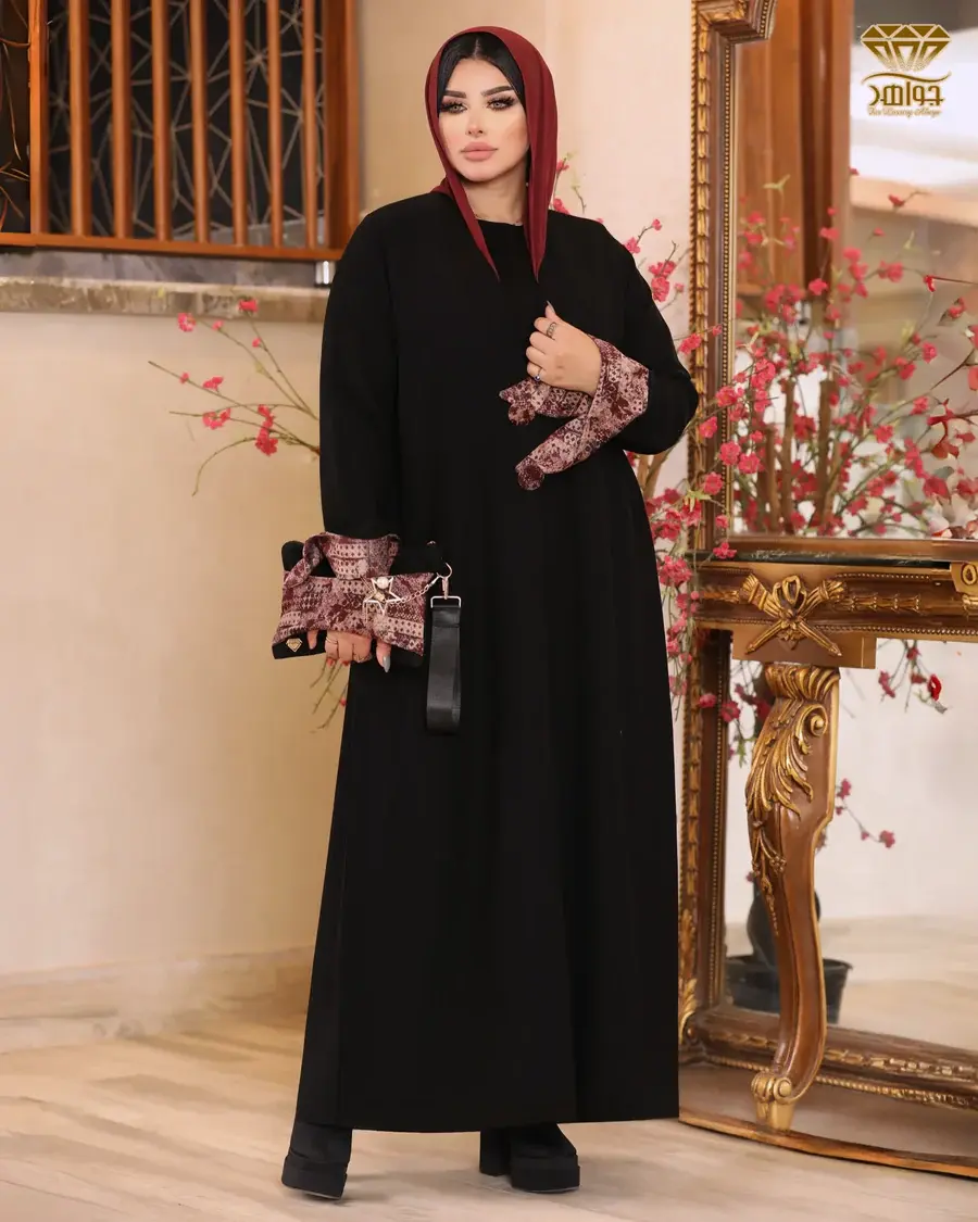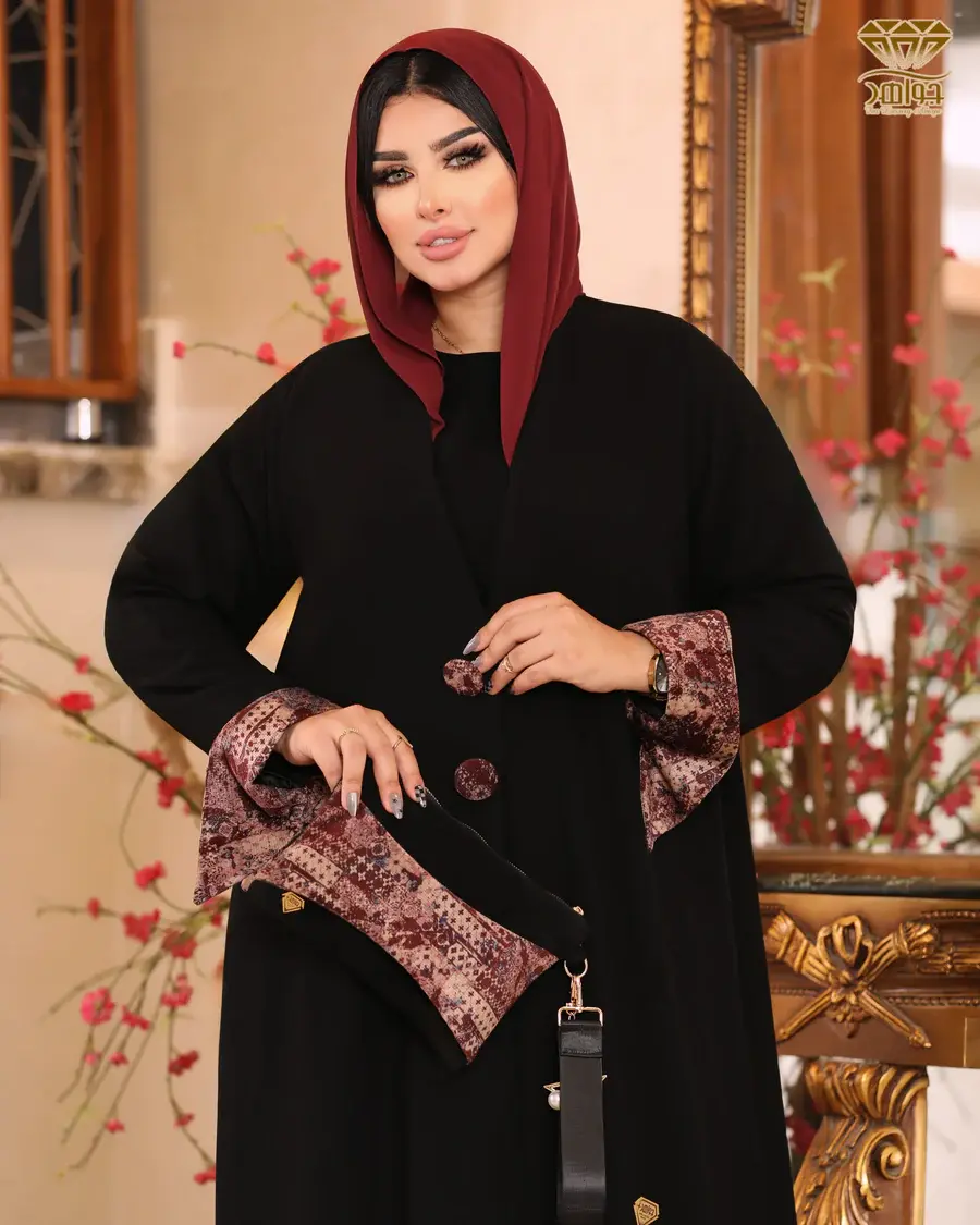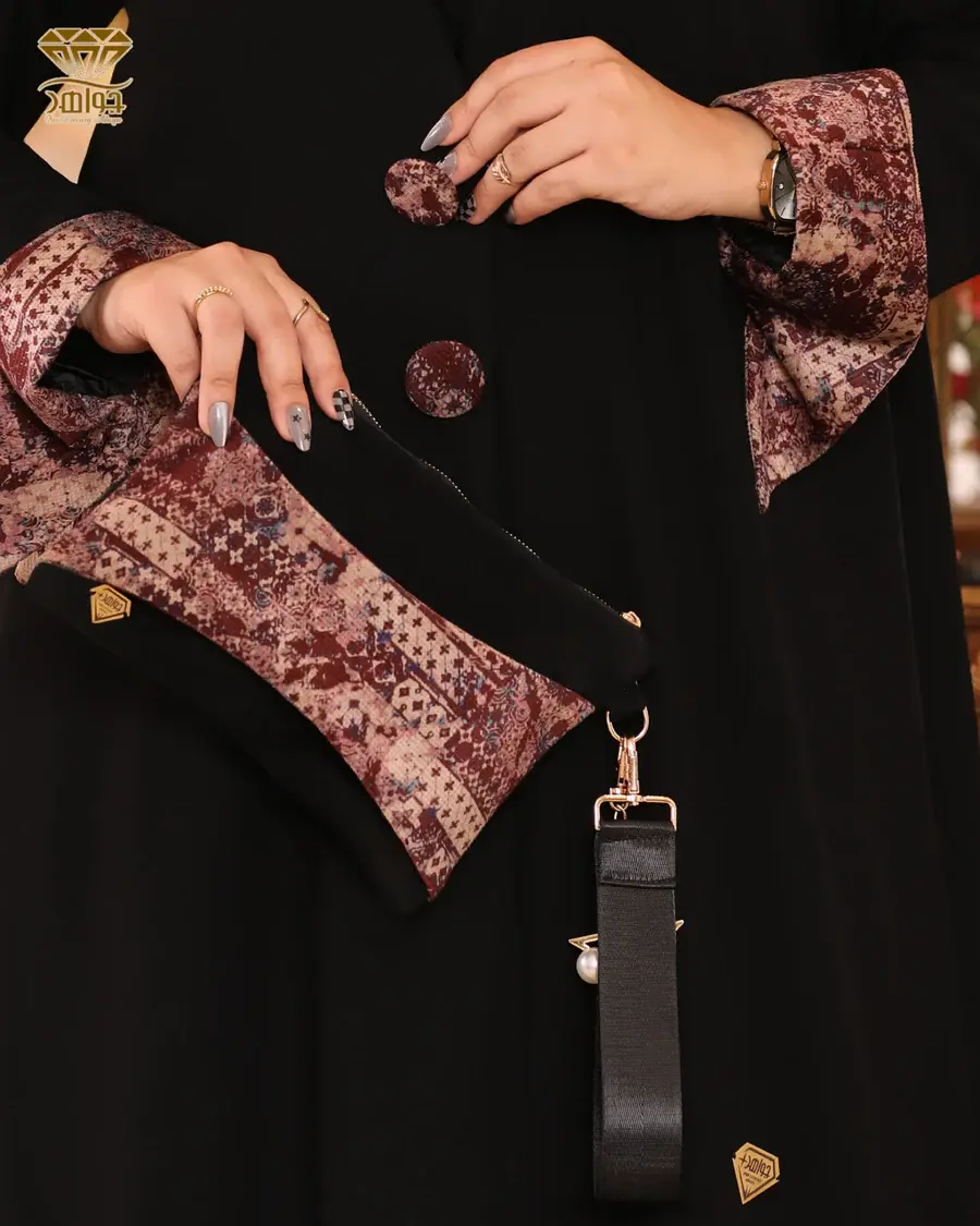 عباية بتصميم فخم ومُختلف، مصنوعة من خامة برلين مستورد مع قلبة كم وزراير بخامة من المخمل الناعم المستورد بنقشة راقية، والزراير مزودة بكباسين للتحكم في فتح وغلق العباية، بإضافة بطانة داخلية ناعمة تُضيف ثبات وأناقة للتصميم.