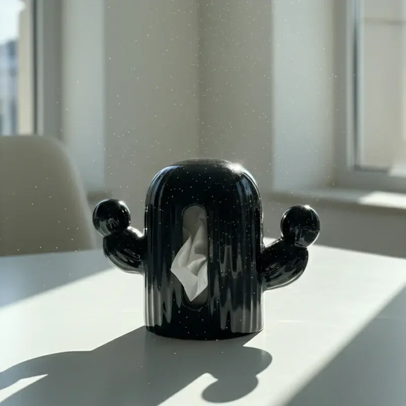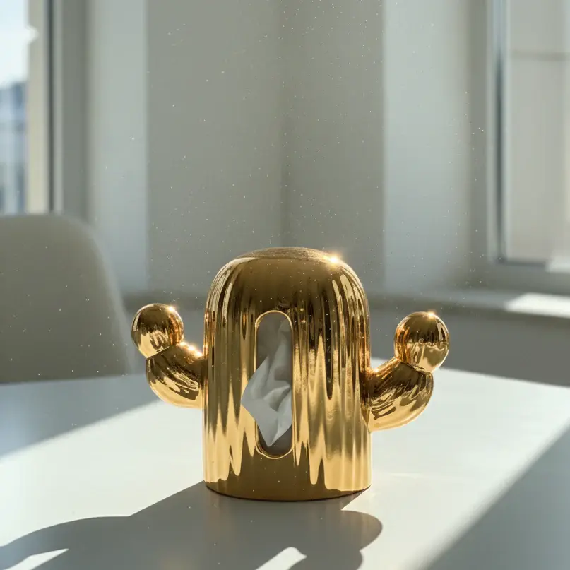 The Abstract cactus tissue box is a playful statement piece that blends futuristic design with artistic expression. Featuring a rounded capsule body and raised arms, this sculpture brings personality and a touch of whimsy to any modern interior. Its reflective surface beautifully interacts with surrounding light, making it a standout decorative accent.